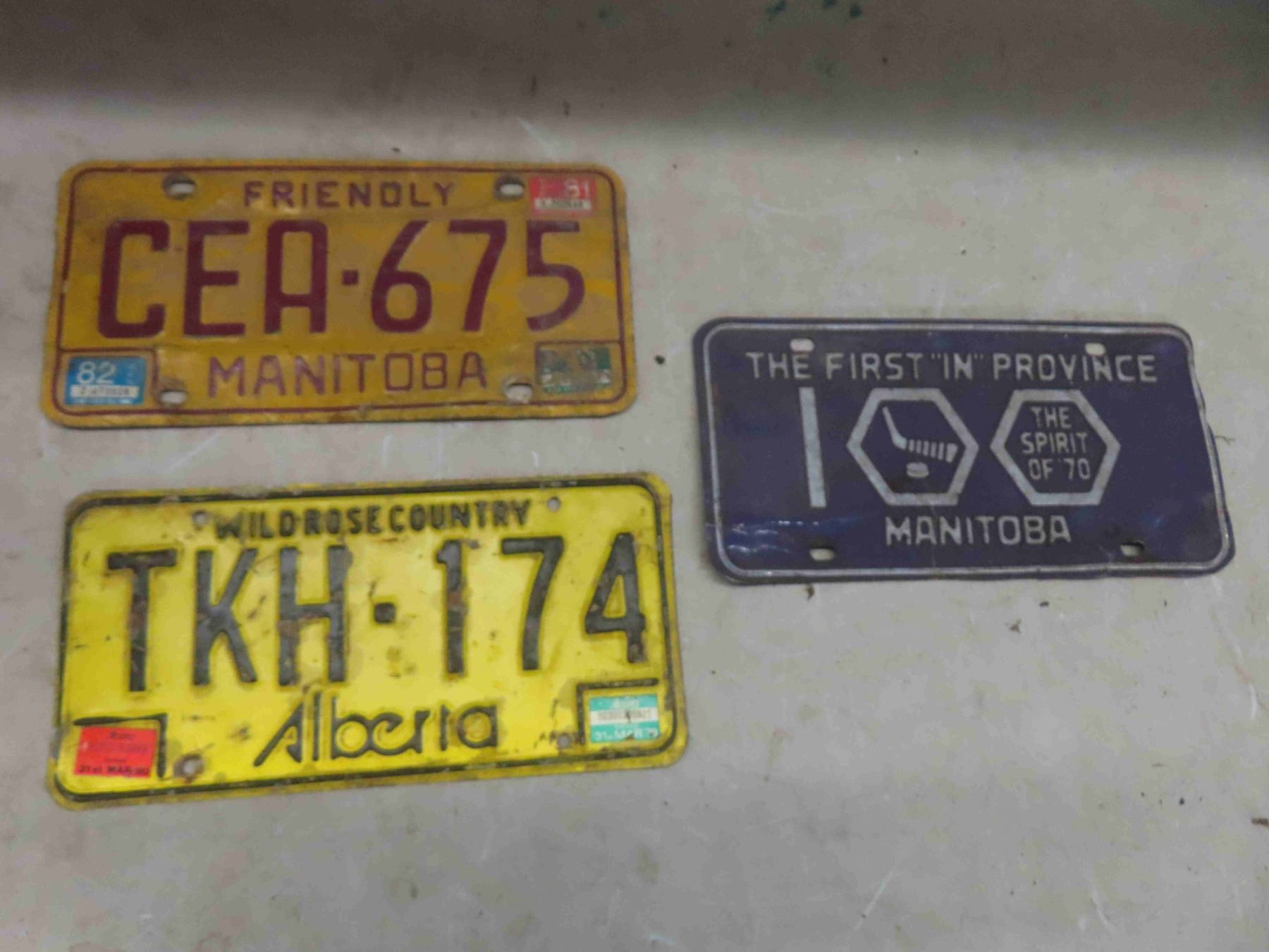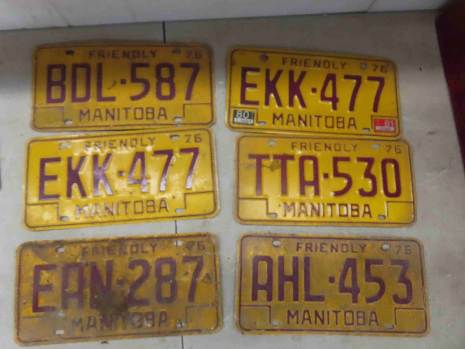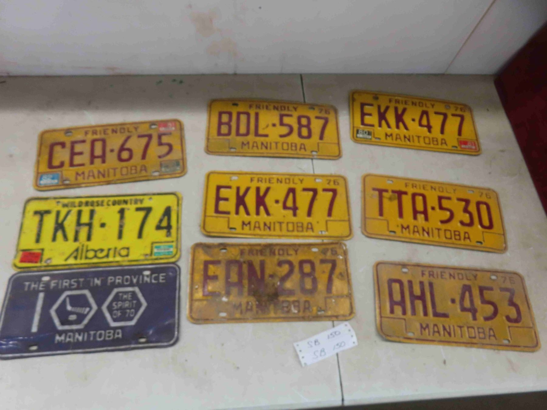 7 manitoba lisence plates 1976, 1 alberta plate.