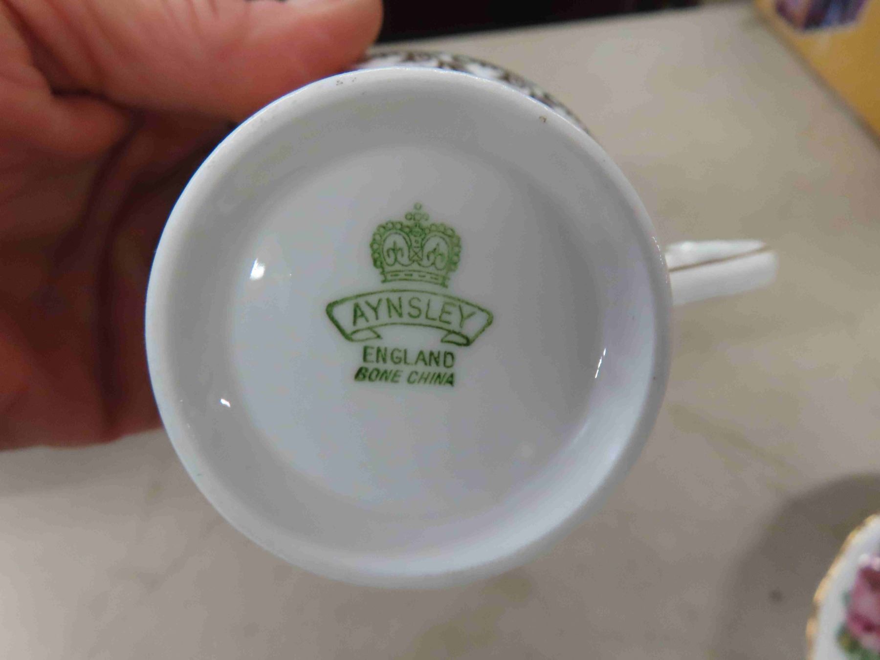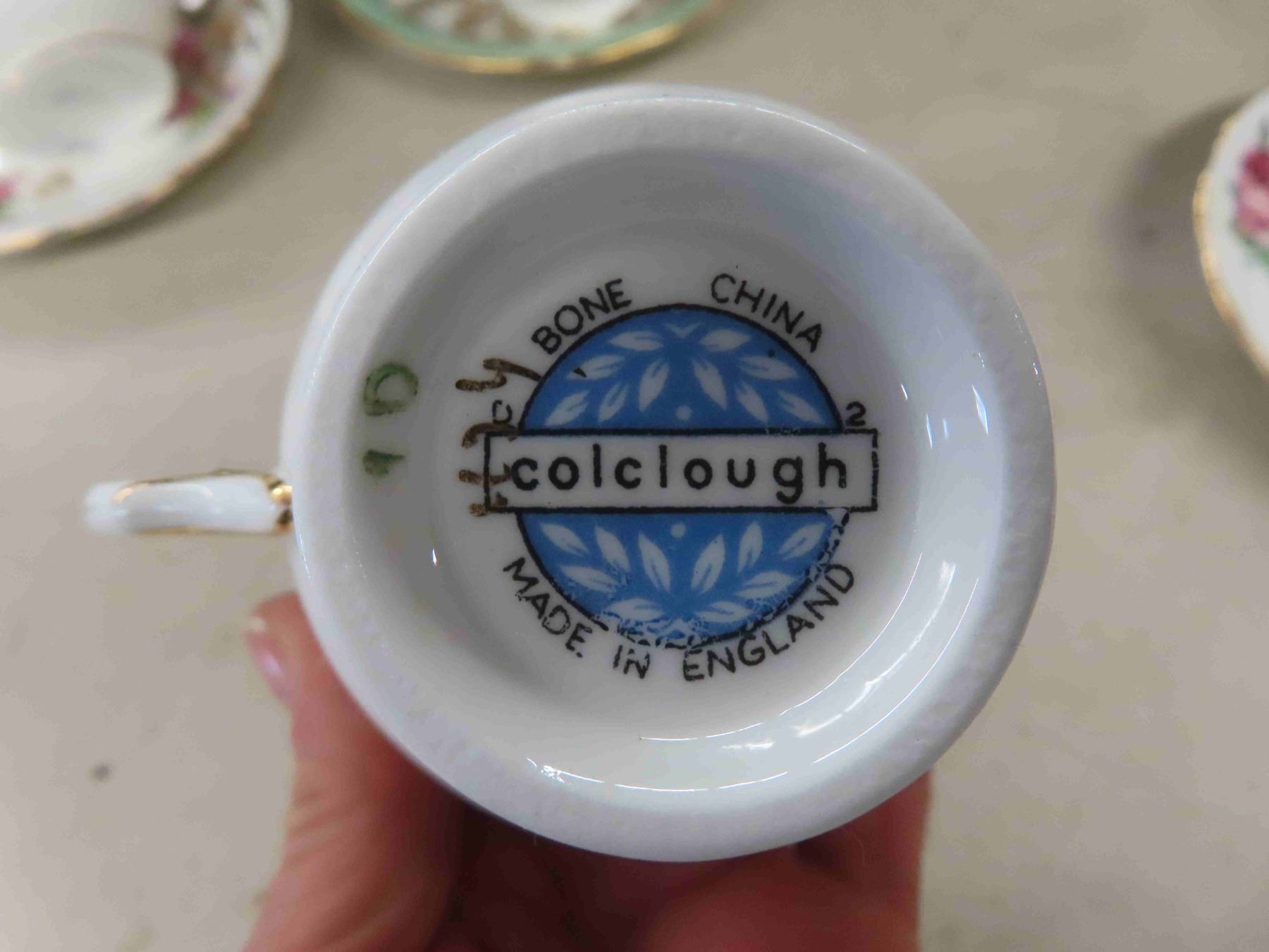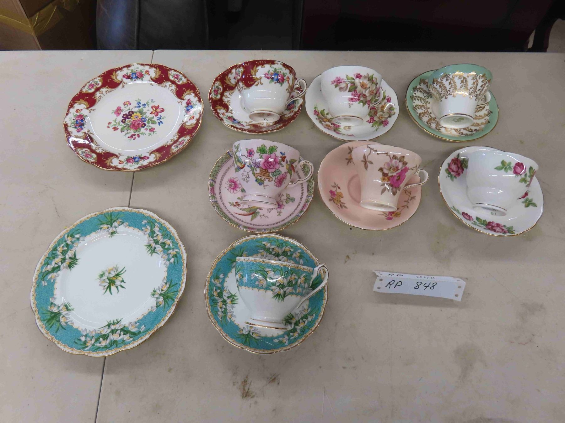 7 teacups with sauucers, 2 side plates, queen anne, coldough, aynsley