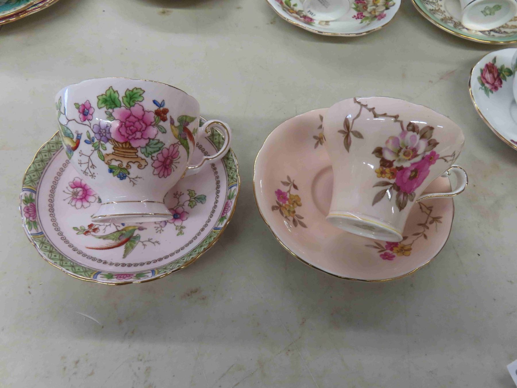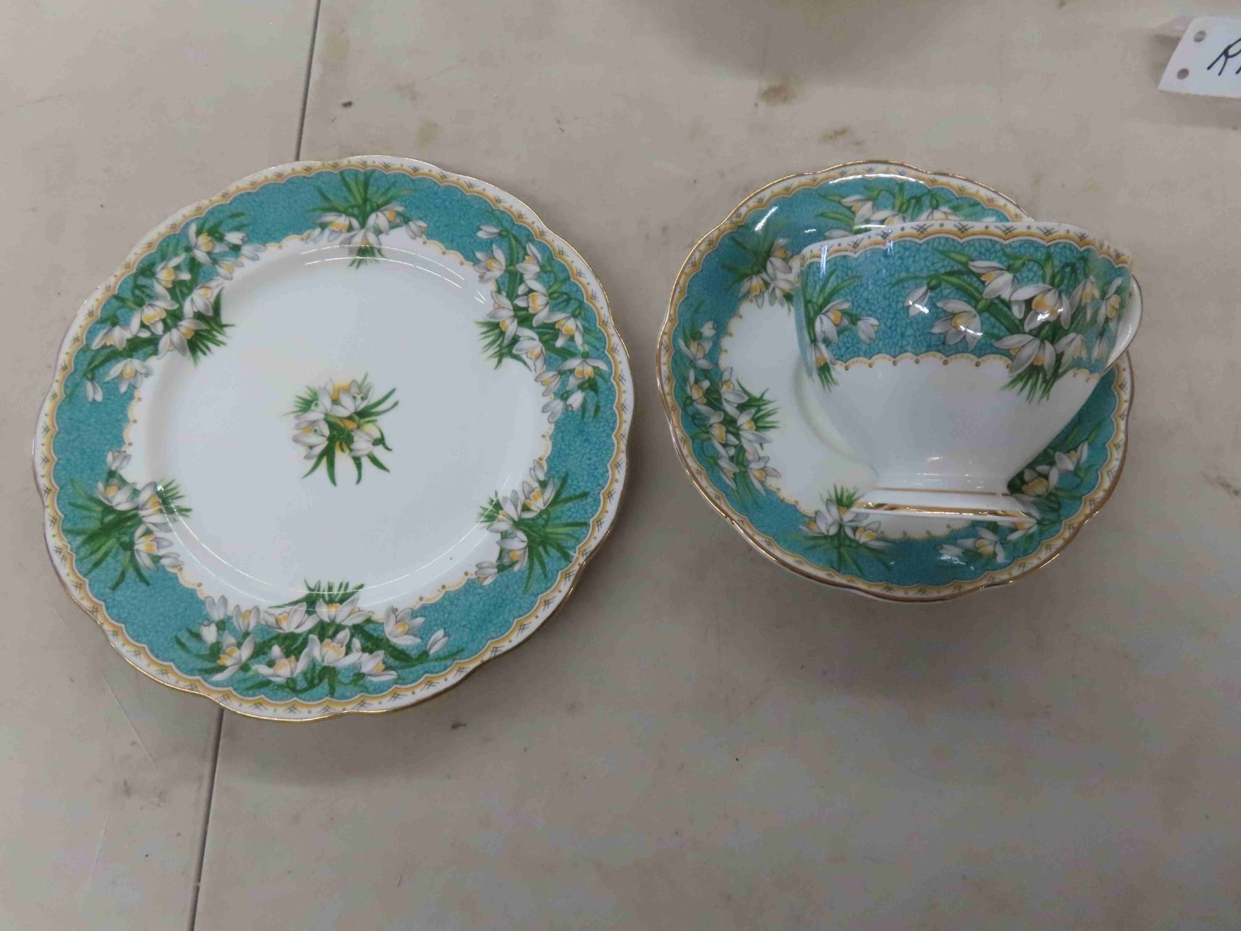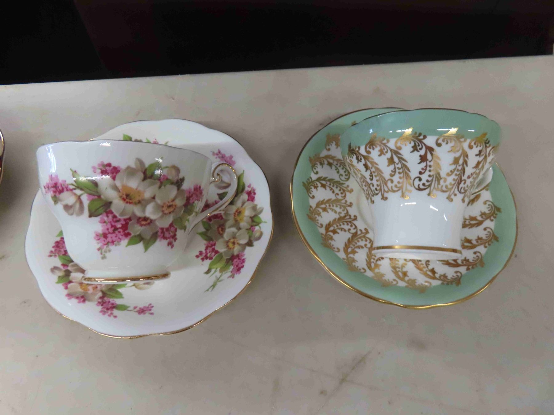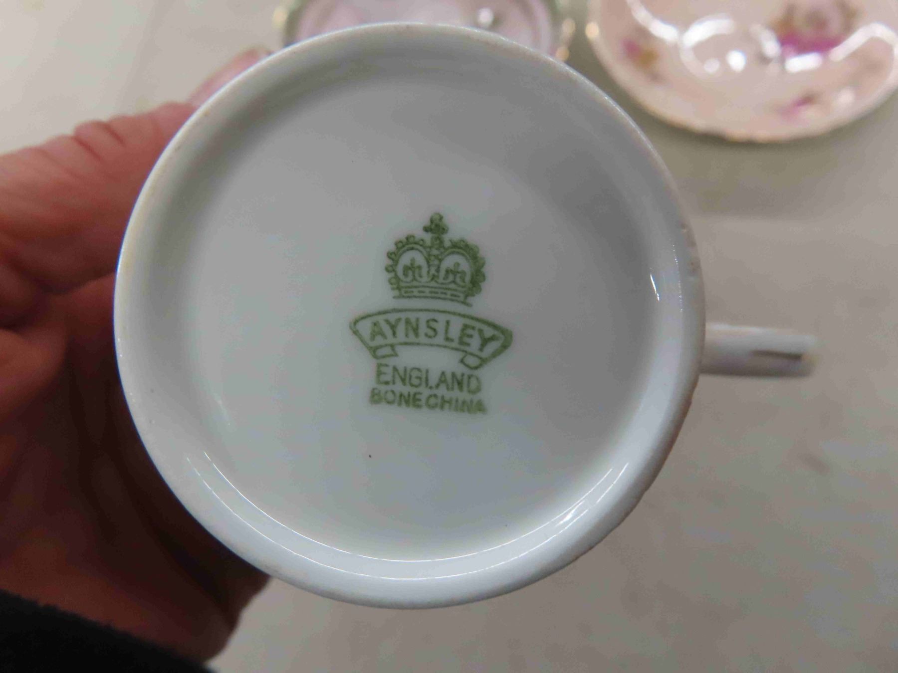 7 teacups with sauucers, 2 side plates, queen anne, coldough, aynsley