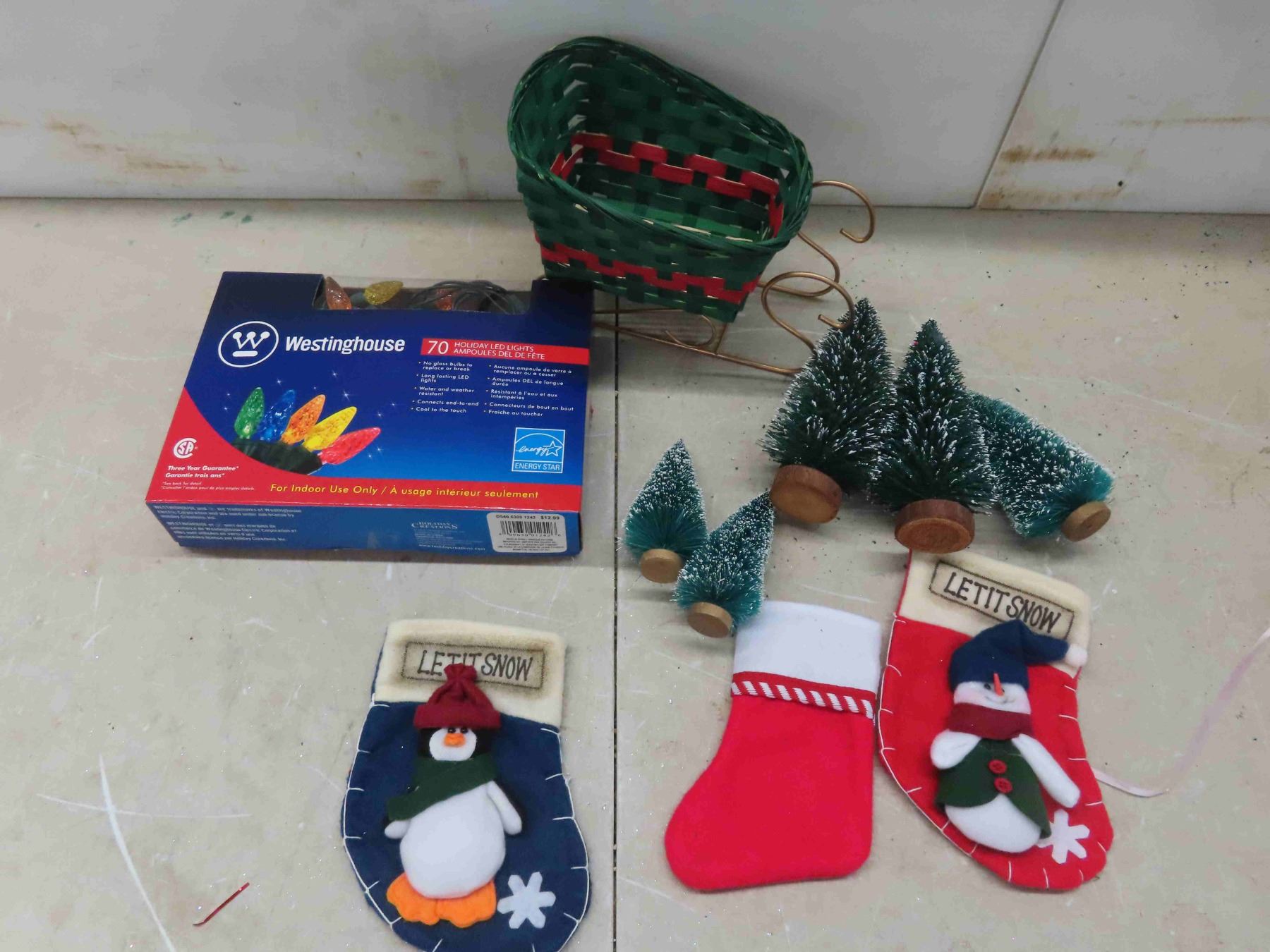 70 LED garland lights , candy canes, mini christmas trees,w rapping paper(over 20 rolls)
