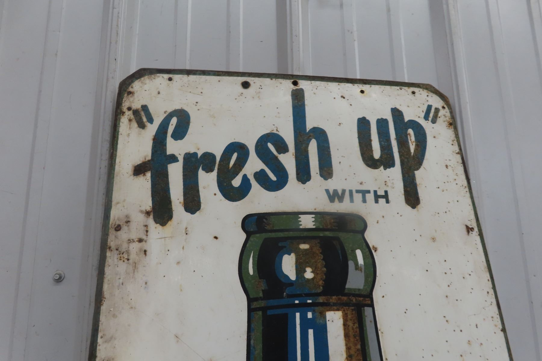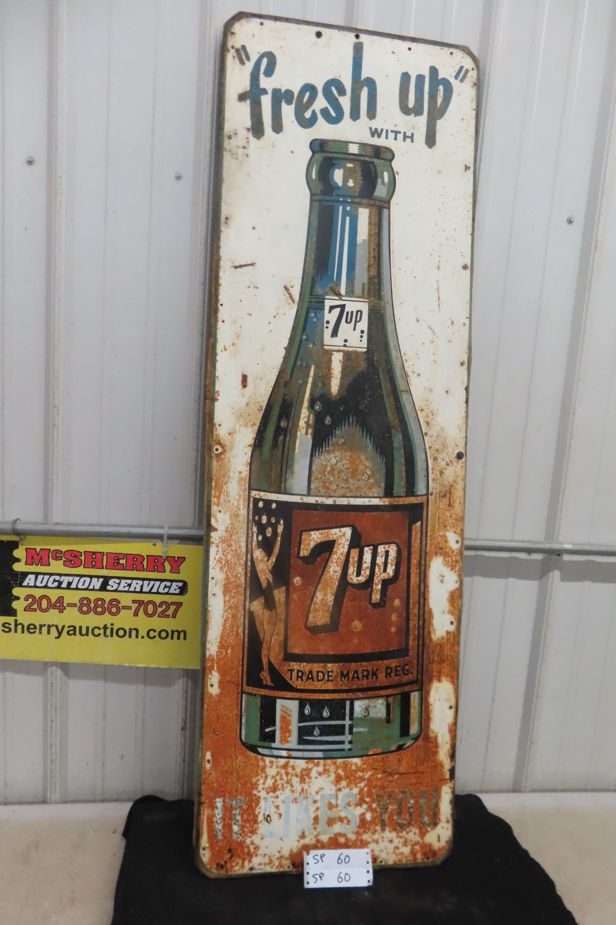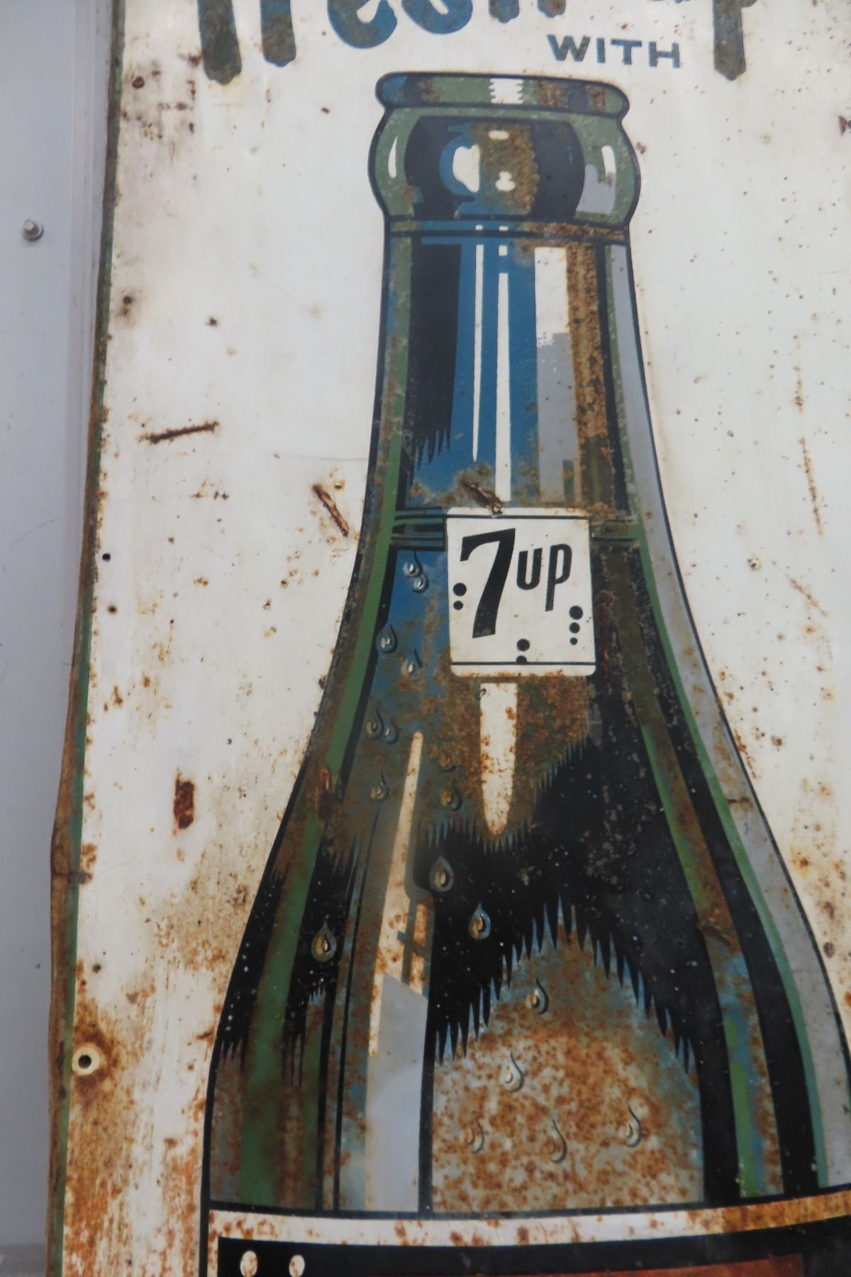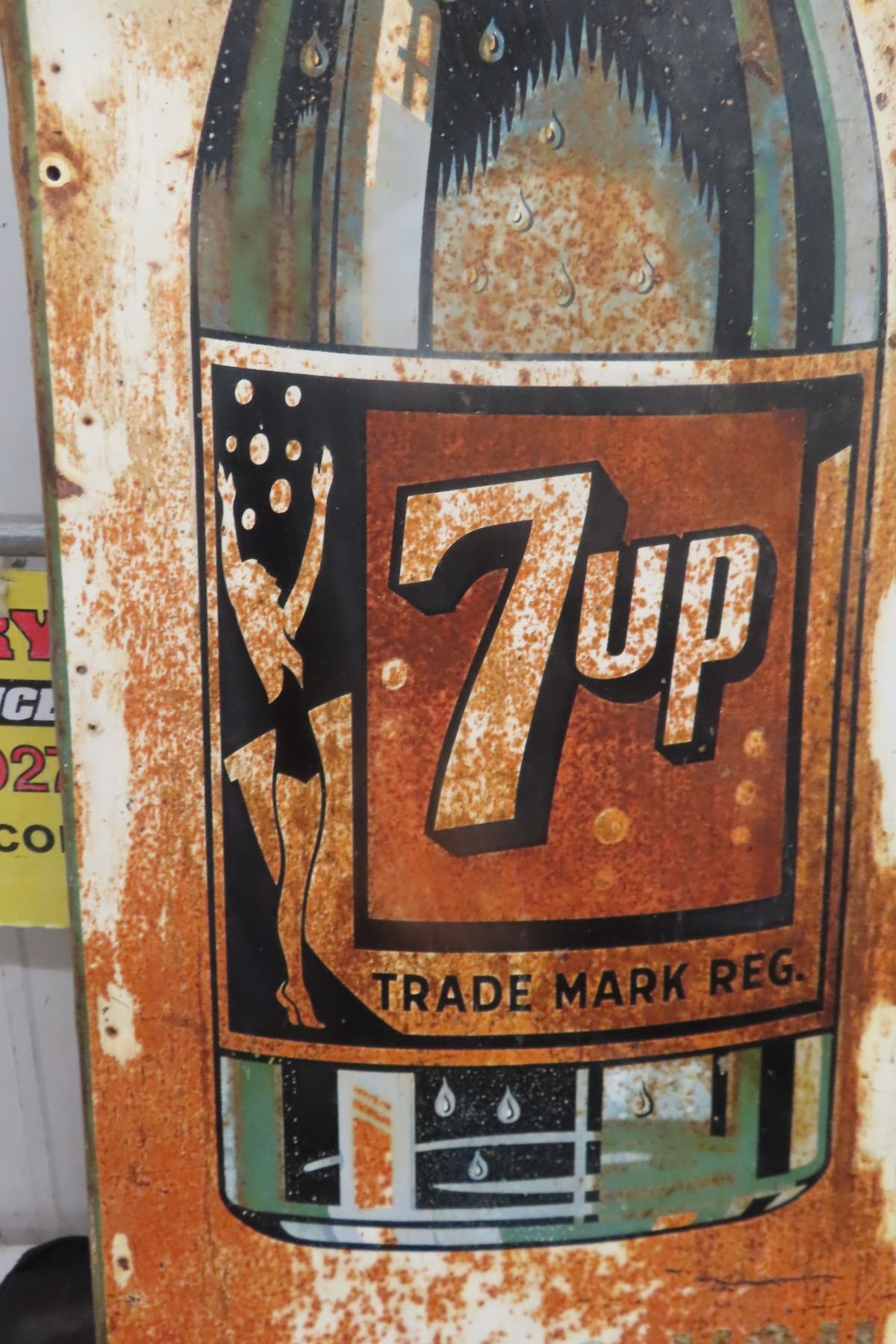 7UP Bottle Metal Embossed Sign with Bottle Girl 16 1/2 x53"