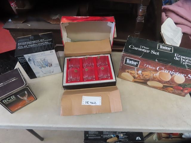 7pc Canister Set, Ice Bucket, Shot Glasses, Crystal Glasses