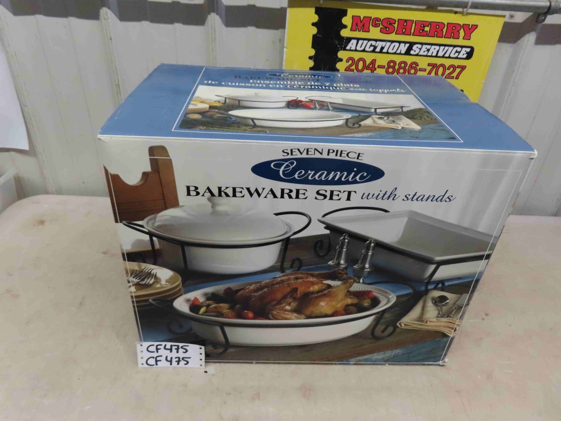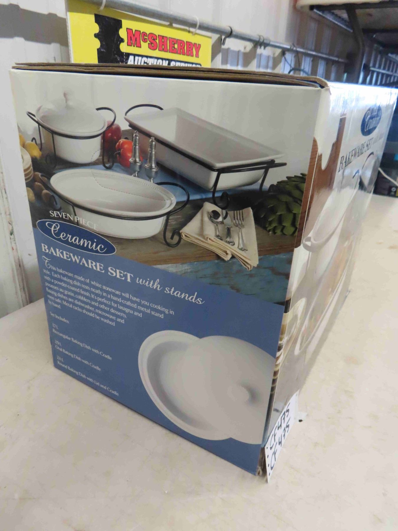 7pc Ceramic Bakeware Set with Metal Stands - New in Box
