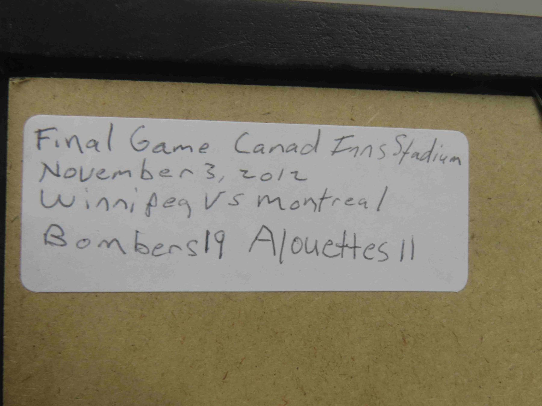 7x7 framed pictures bombers and aloettes footballl game. Nov 3/2012, football, baseball, and hockey cards