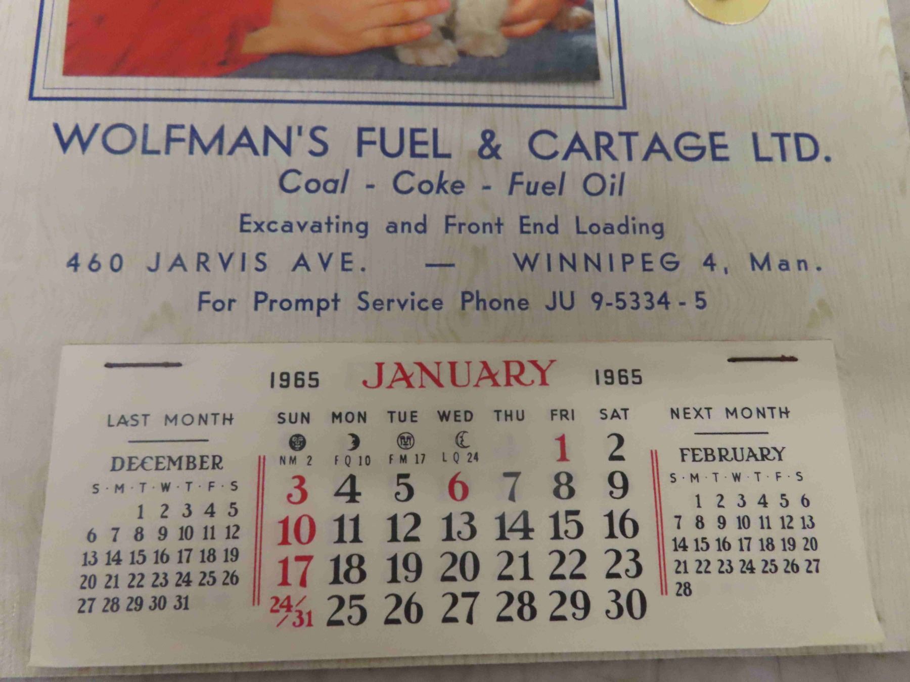 (8) 1965 Calendars with Thermometers Advertising Wolfman's Fuel + Cartage Ltd. 460 Jarvis Ave Winnipeg 7" X 9.5"