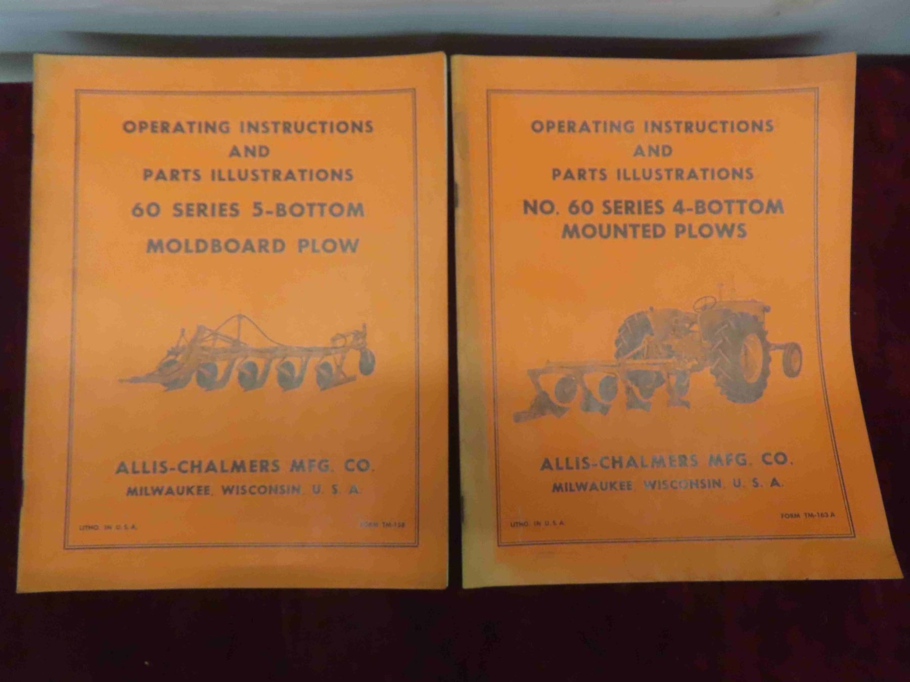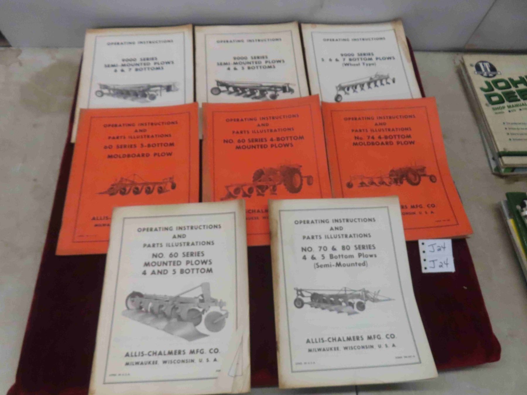 (8) Allis-Chalmers Operating Instrutions: 9000 Series Semi Mounted Plows, 6+7, 4+5, 5, 6+7 Bottom Plows + 60 Series 4+5 Bottom Mounted Plows + 70&80 Series + 74 Series