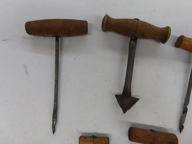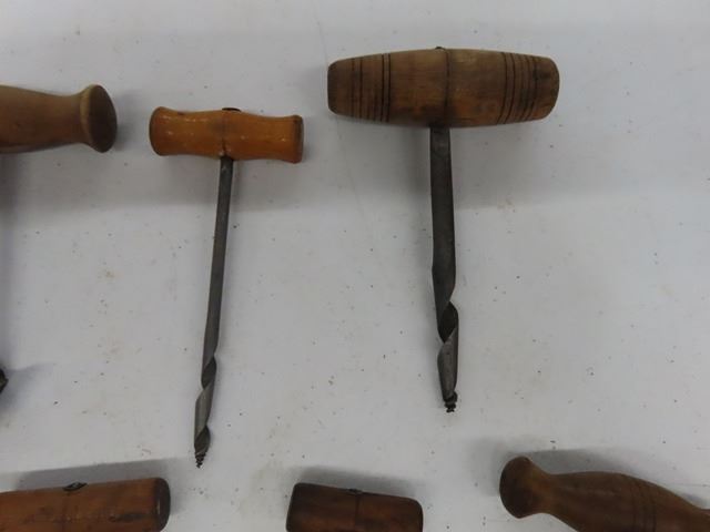 8 Antique Vintage Auger Hand Boring Bits. Various sizes and makers. Would make a great display.