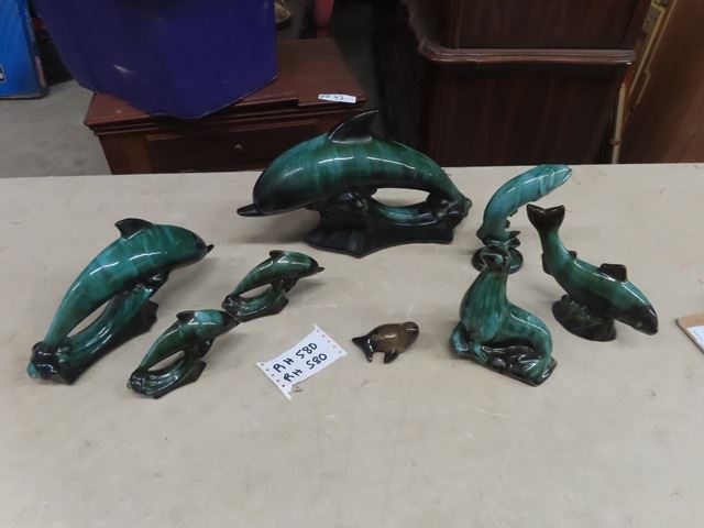 8 Blue Mountain Ornaments; 4 Dolphins, 2 Fish, 2 Seals