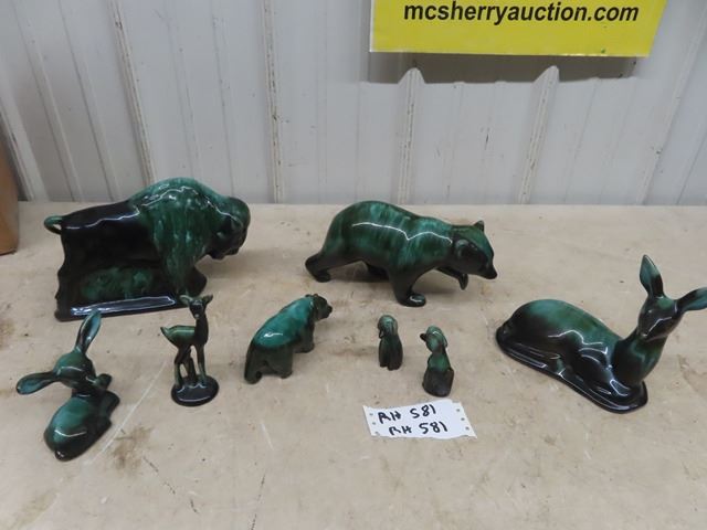8 Blue Mountain Ornaments; Buffalo, 2 Bear, 3 Deer, 2 Dogs