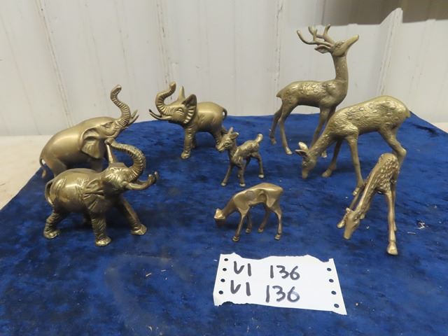 8 Brass Ornaments, Elephone , Deer & Giraffes