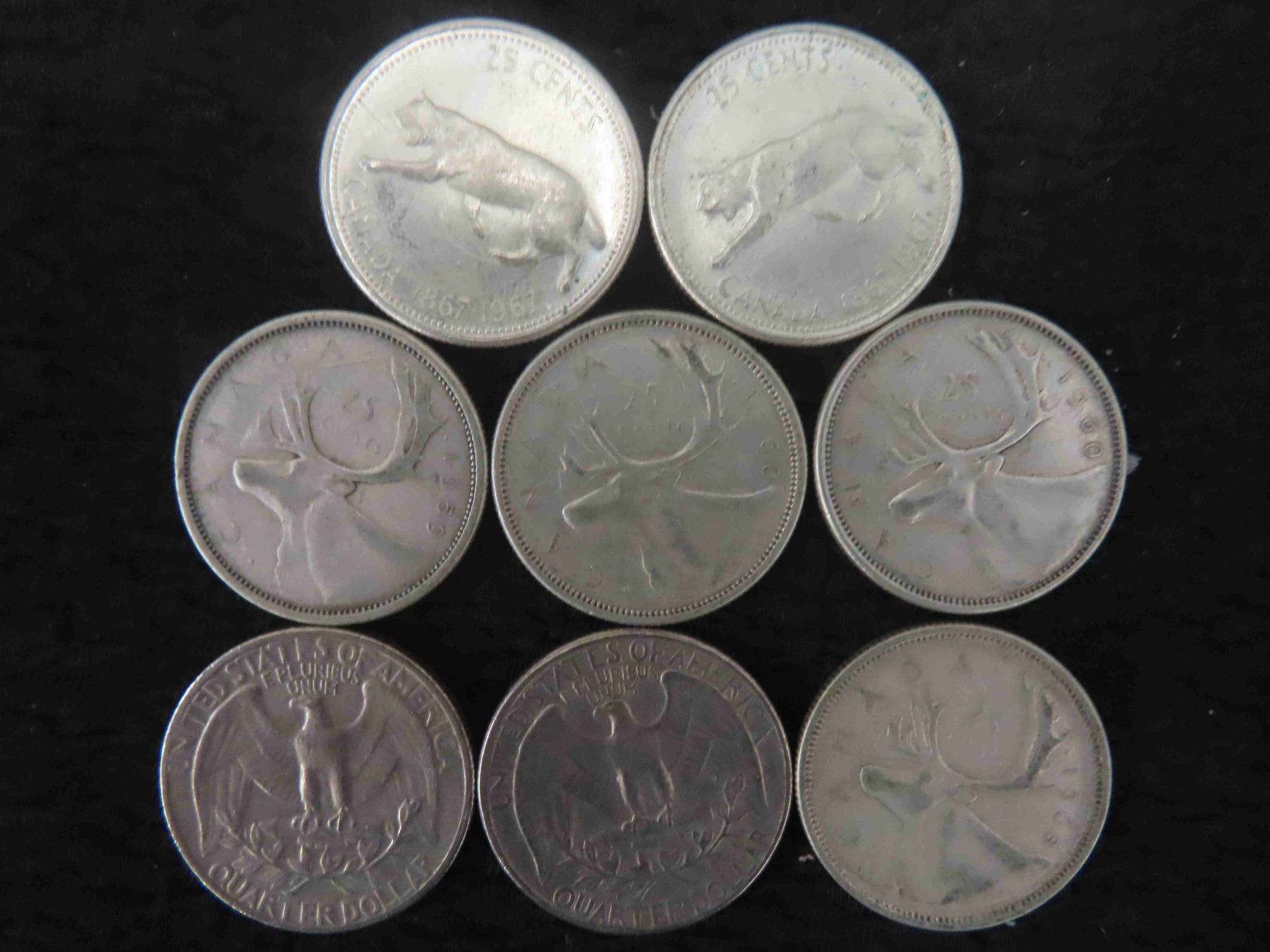 8 Canadian and USA Quarters 1959,60,60,63,66,67,67,67