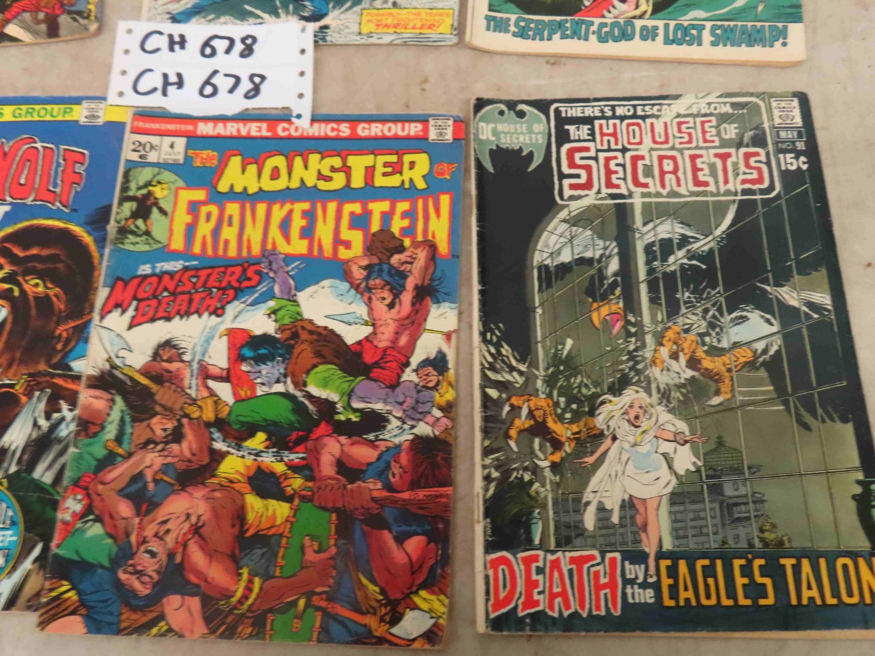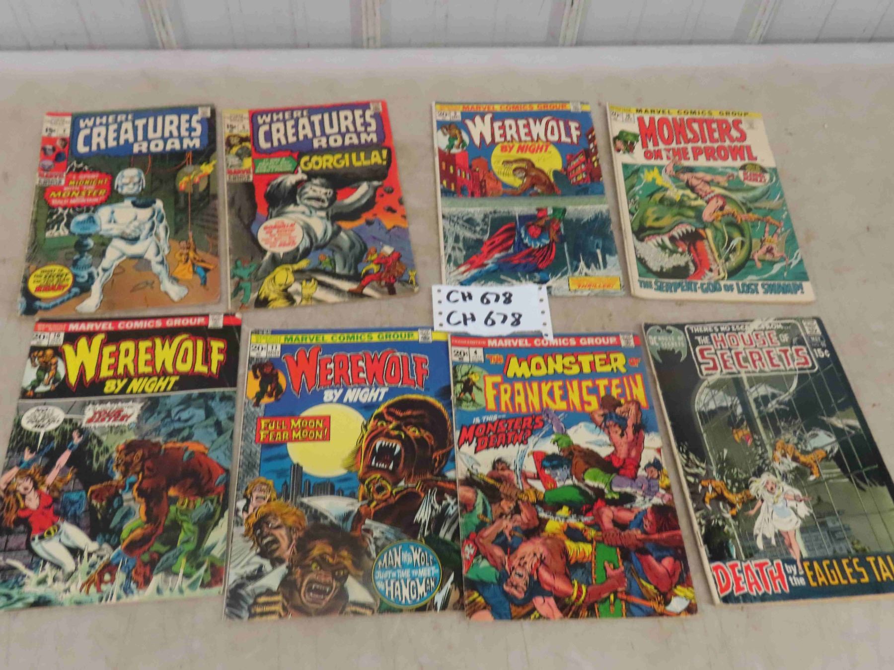 8 Comic Books: Where Monsters Roam #2 #5 , Werewolf By Night #9 #10 #11 , Monster of Frankenstein #4 , Monsters on the Prowl #16 , House of Secrets #91