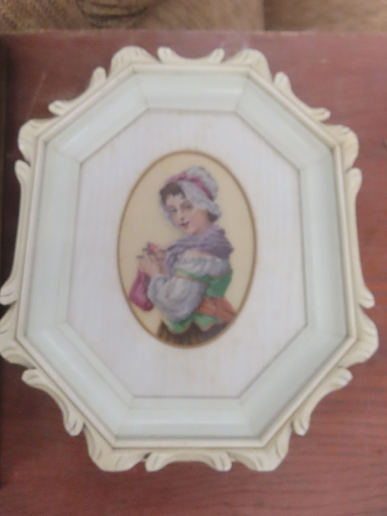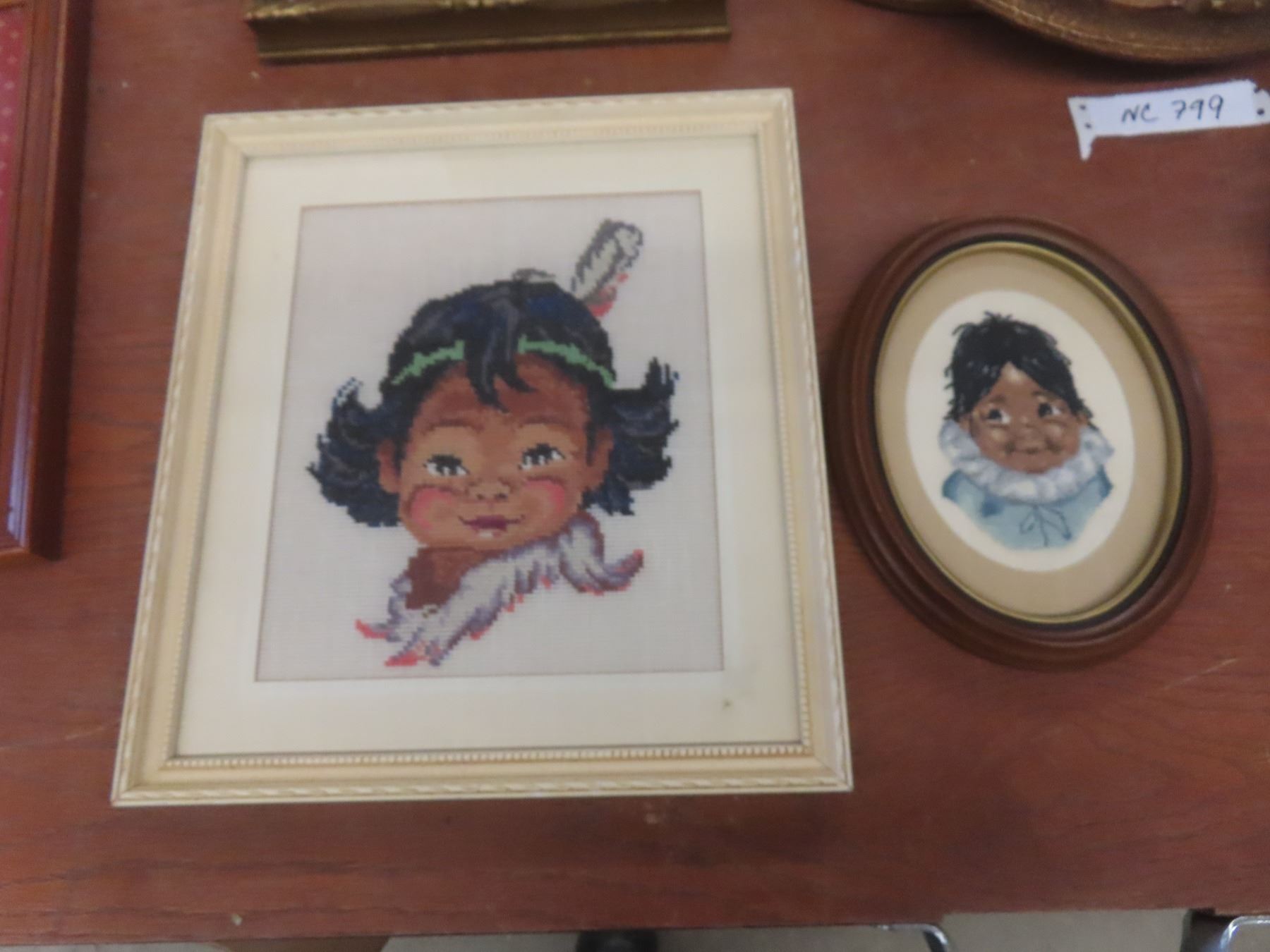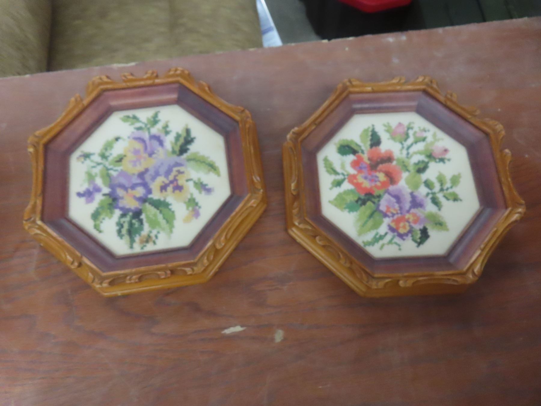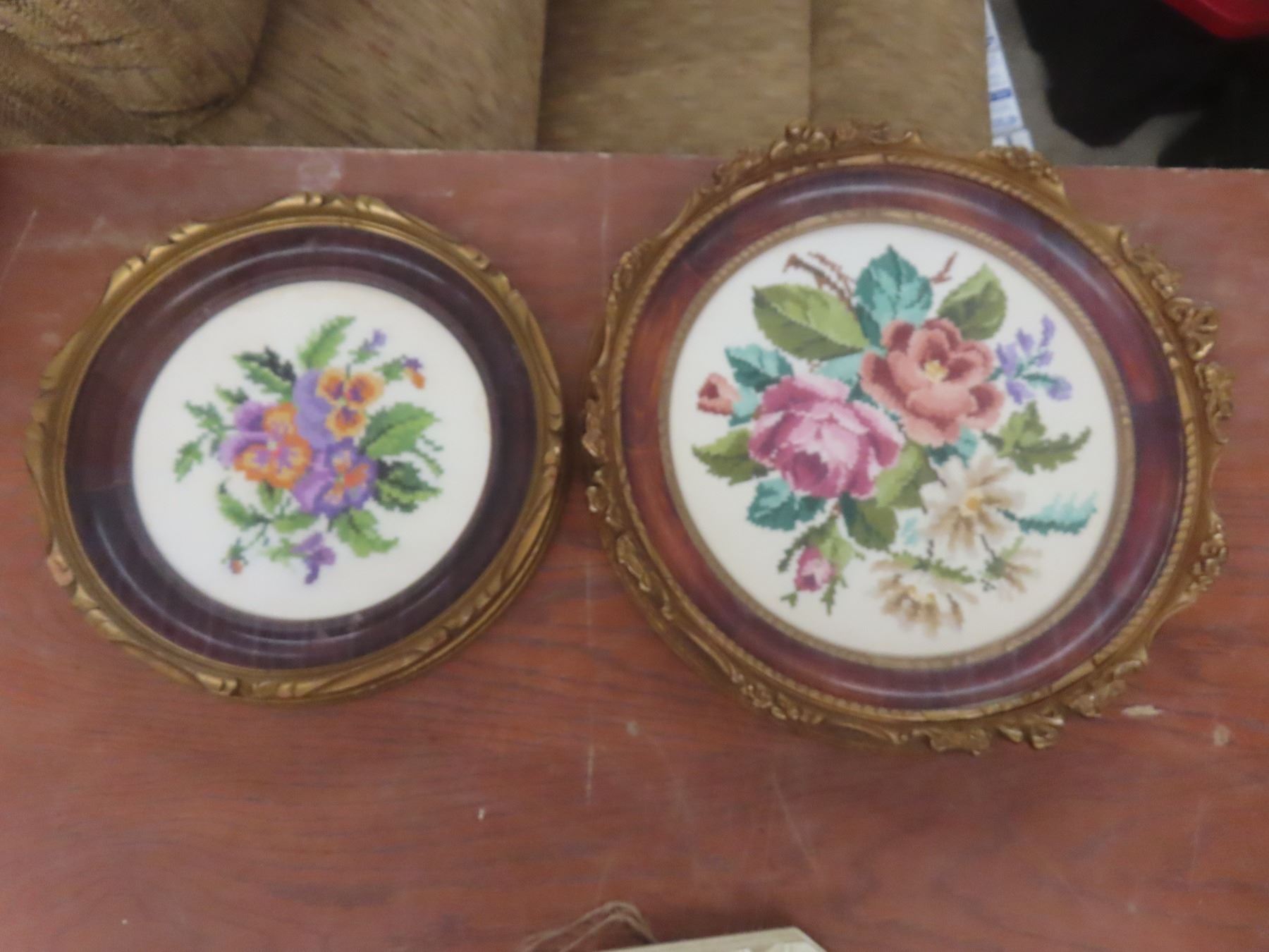 8 Cross Stick/Petit Point Framed Pictures and Antique Georgan Lace