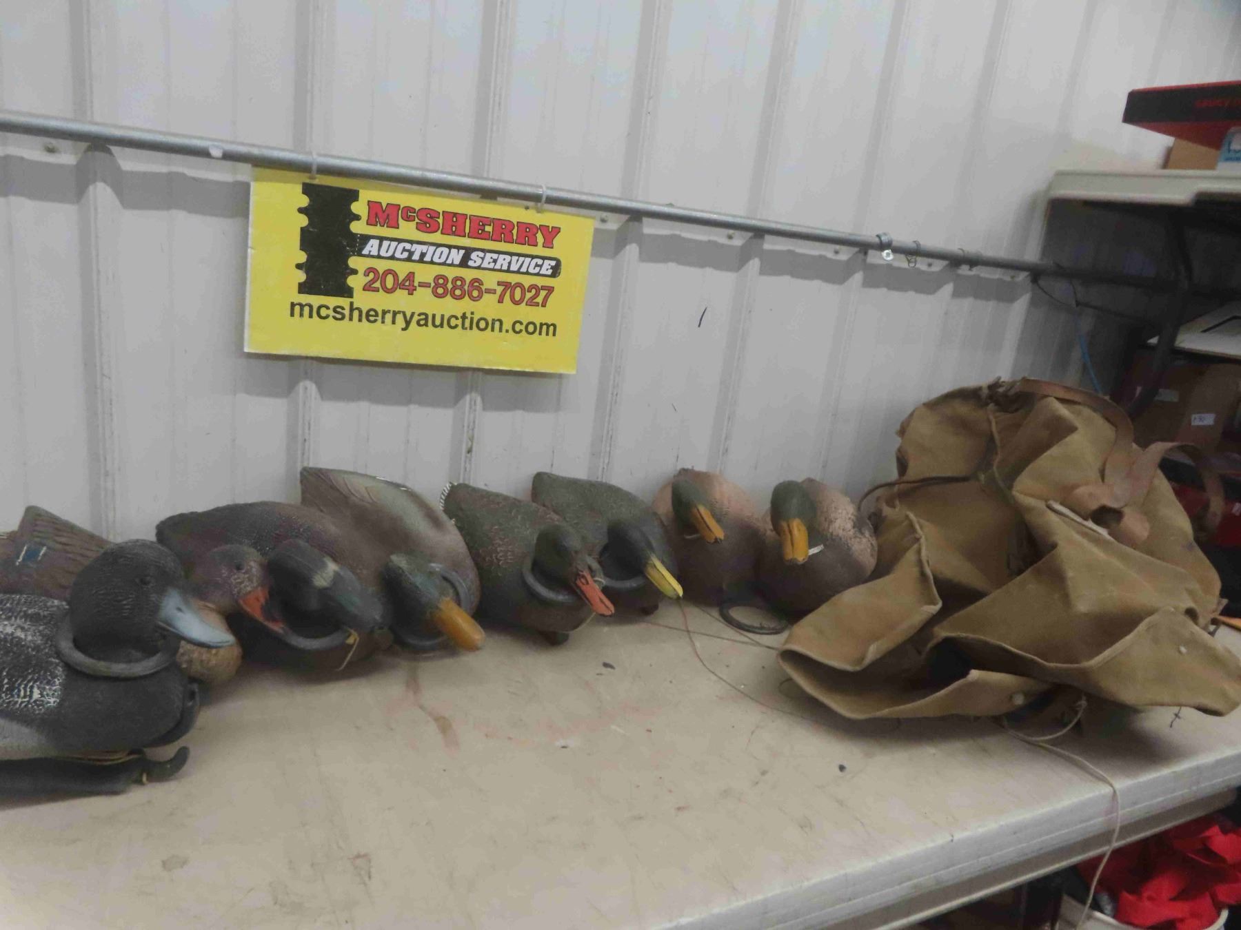 8 Duck Decoys with Weights in Large Canvas Bag