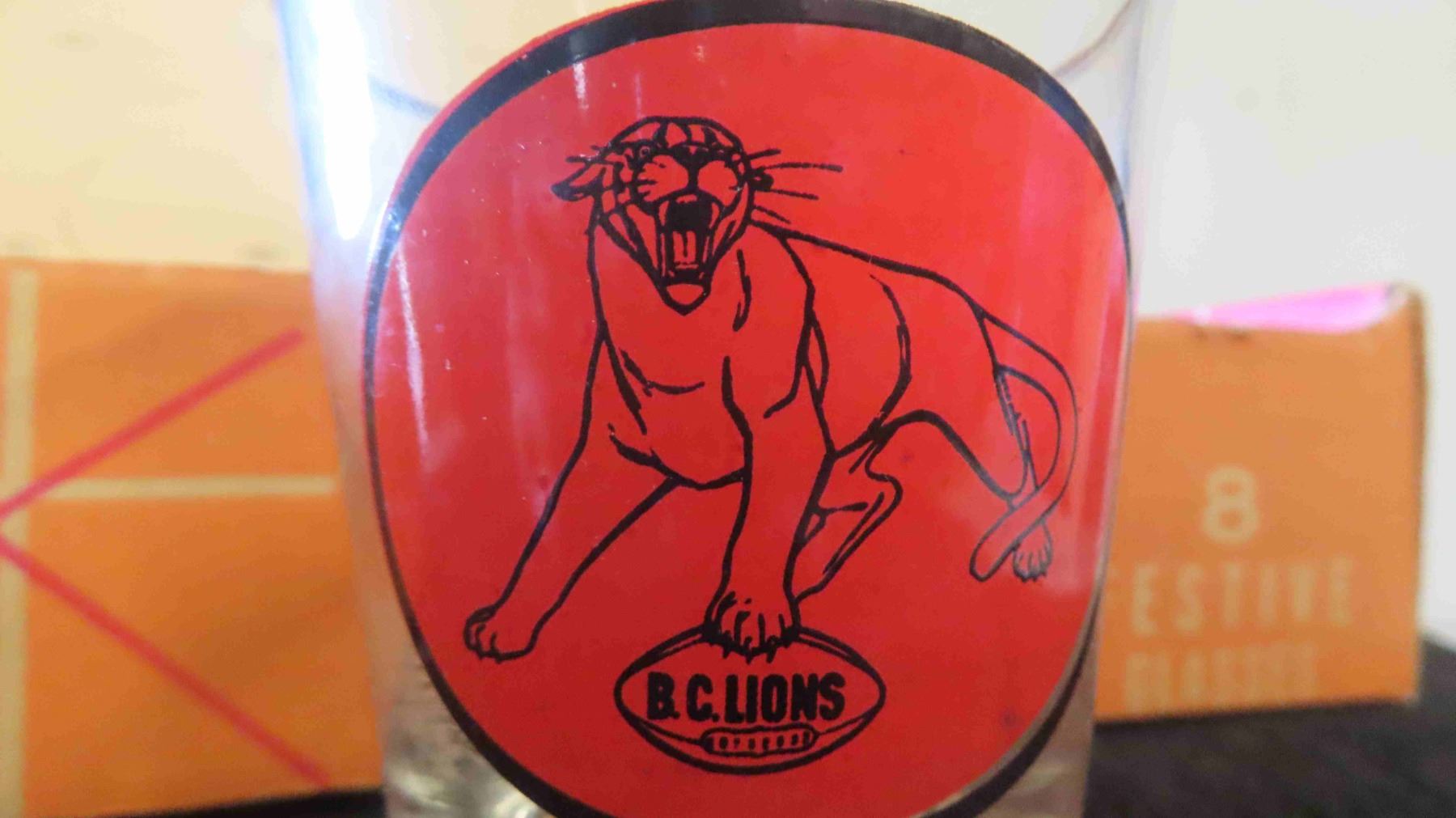 8 Festive Glasses with BC Lions in Original Vintage 'Frichant' Box