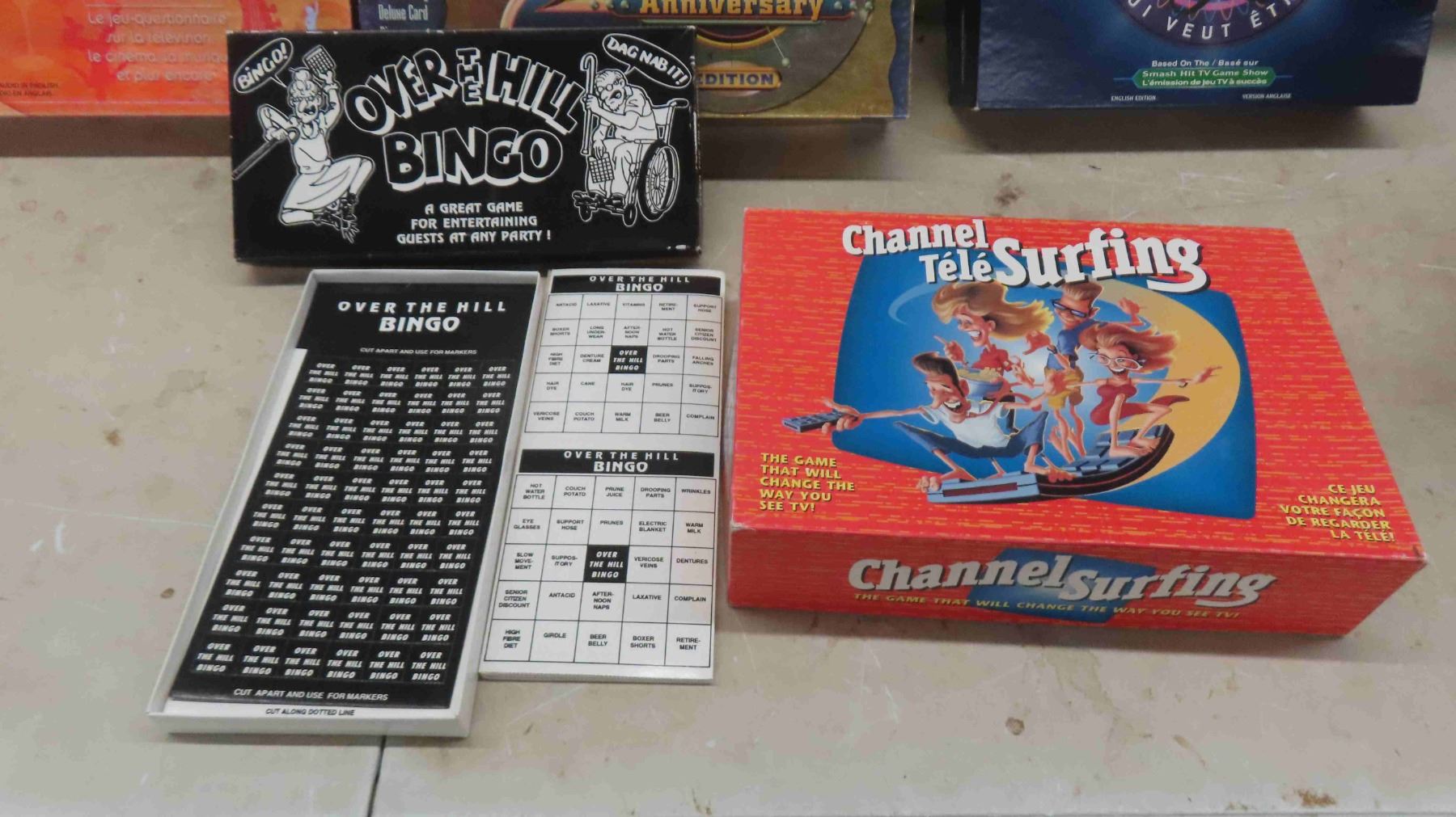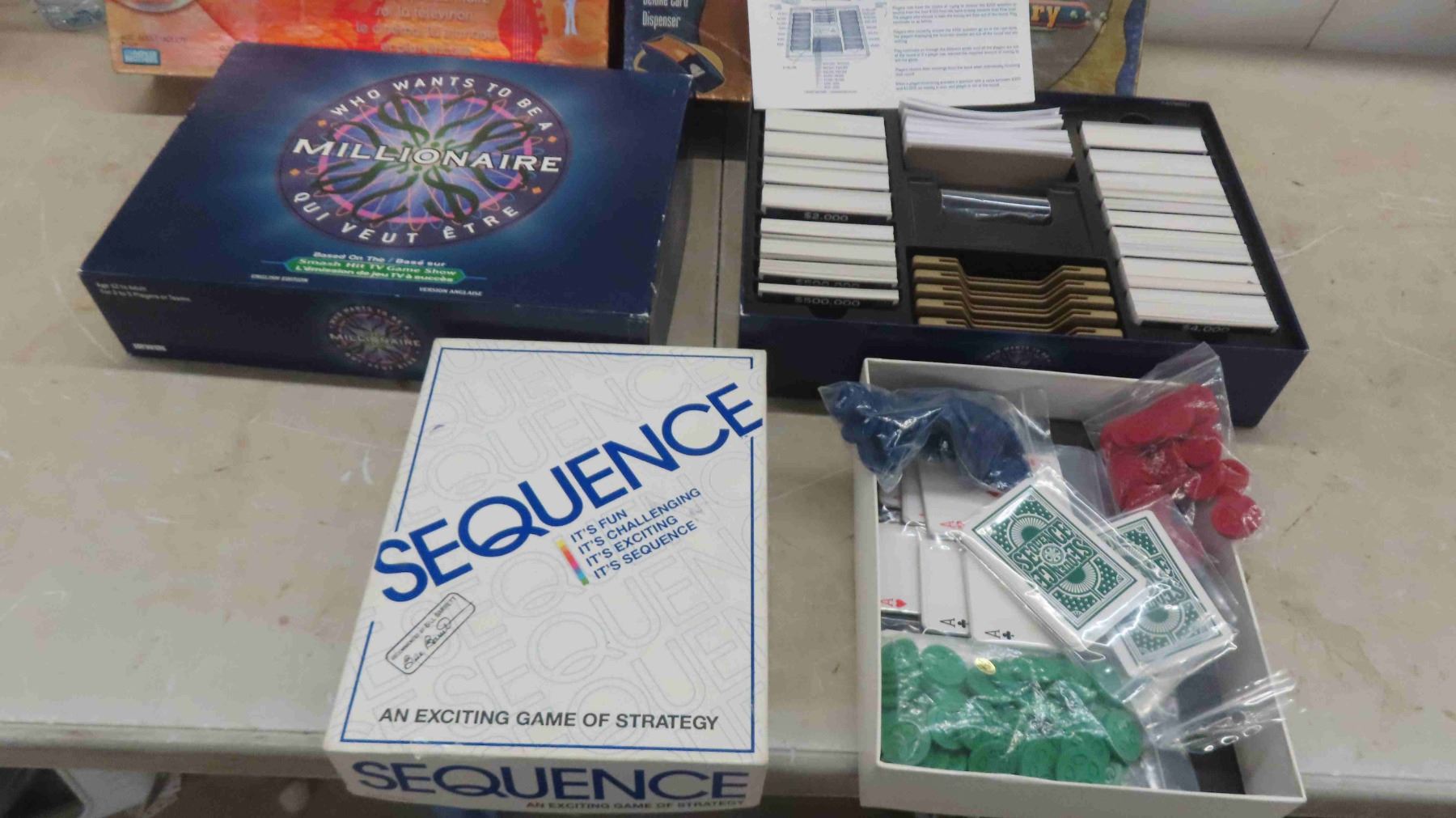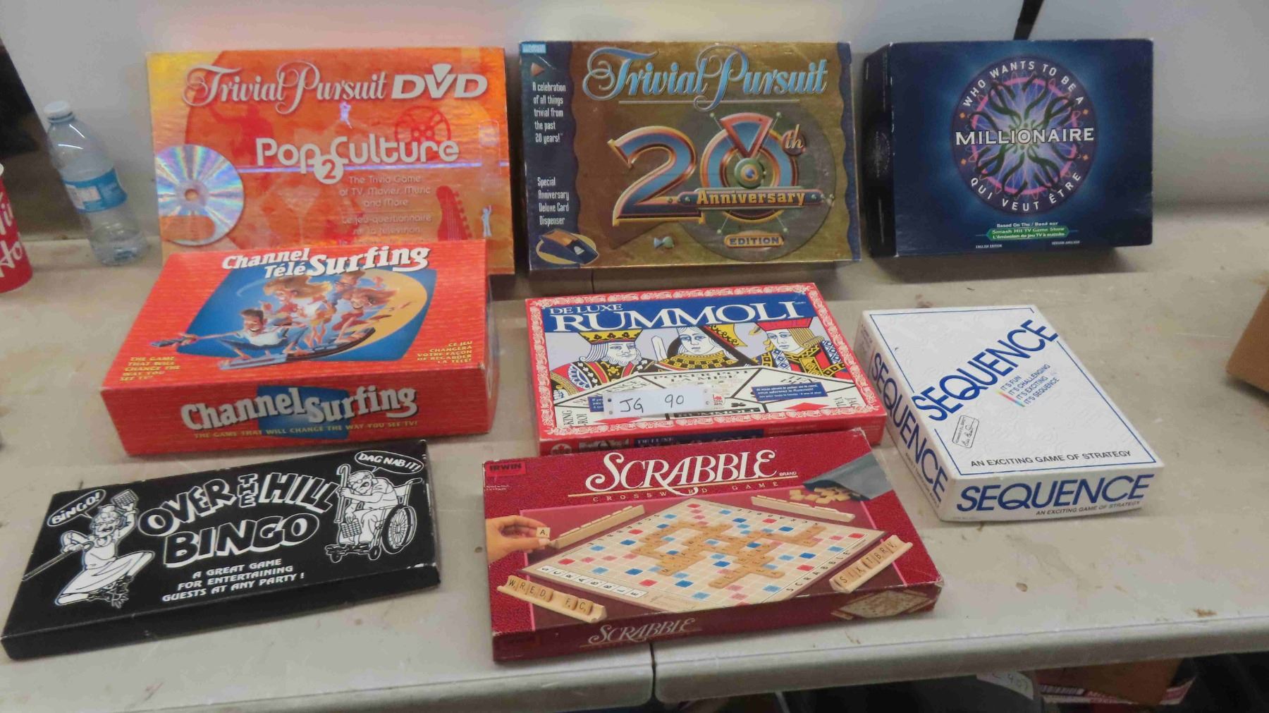 8 Games : Trivia Pursuit DVD , Pop2 Culture , Trivial Pursuit 20th Anniversary , Channel Surfing , Deluxe Rummoly , Scrabble , Who Wants To Be A Millionaire , Over The Hill Bingo , Sequence (1 Card Missing)