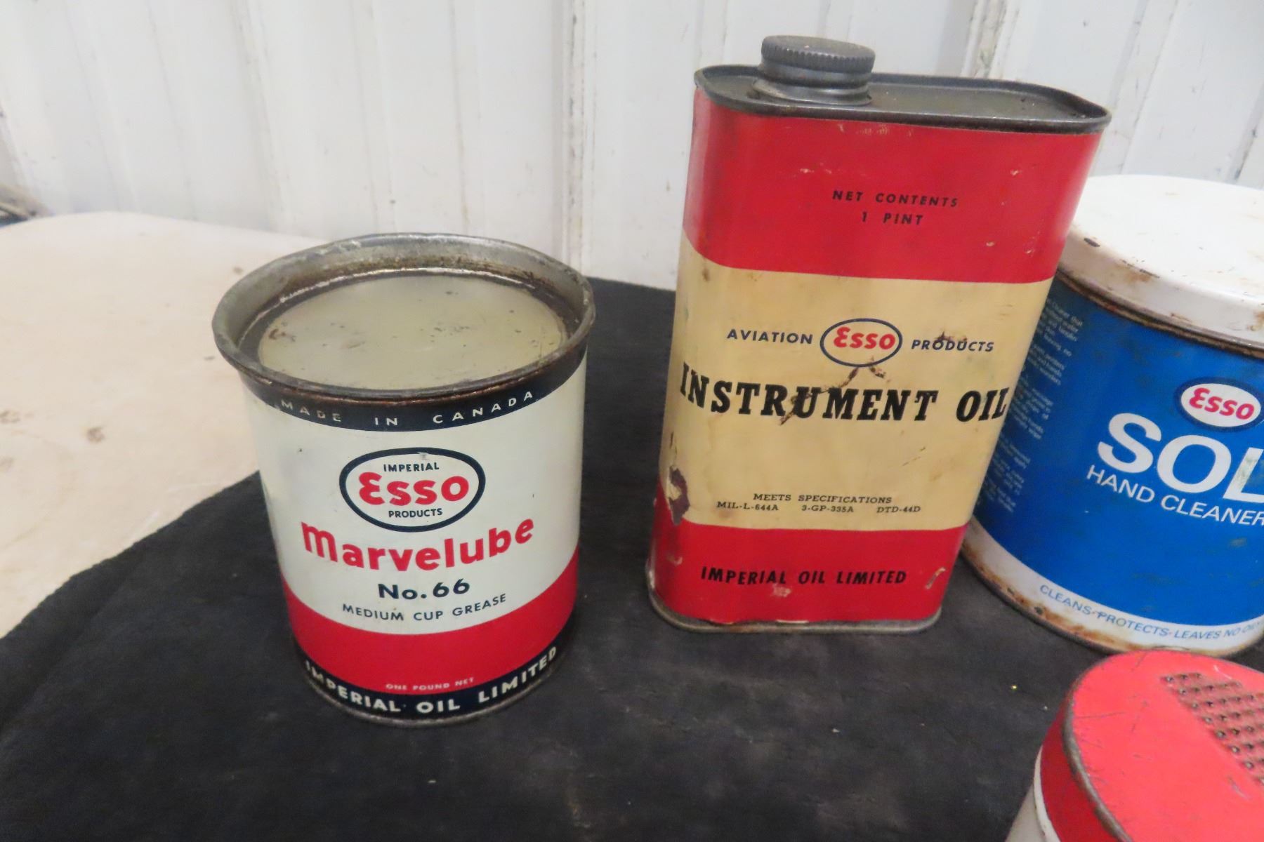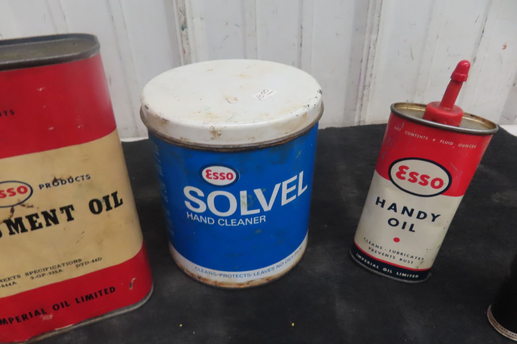 (8) Garage Cans: Camel Tube Patch, Esso Handy Oil, Whiz, GM, Plus.
