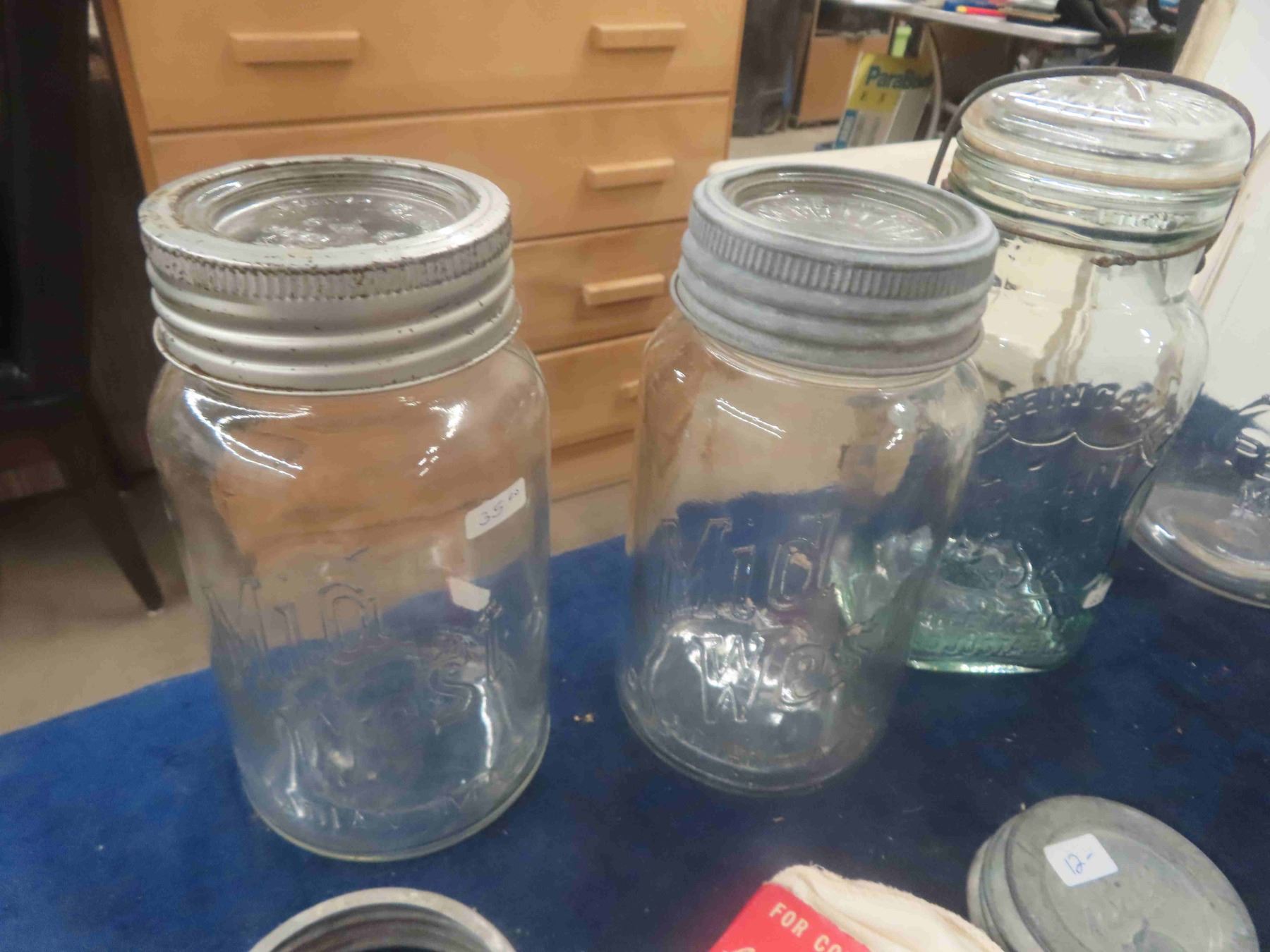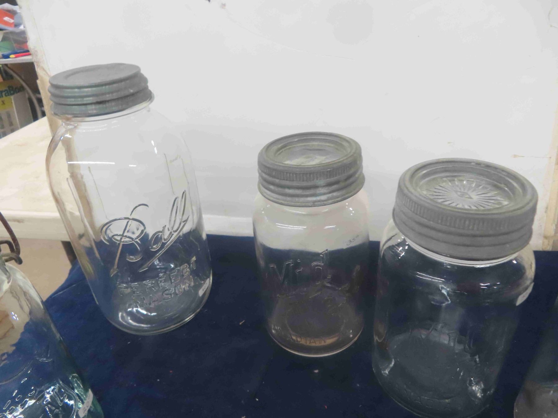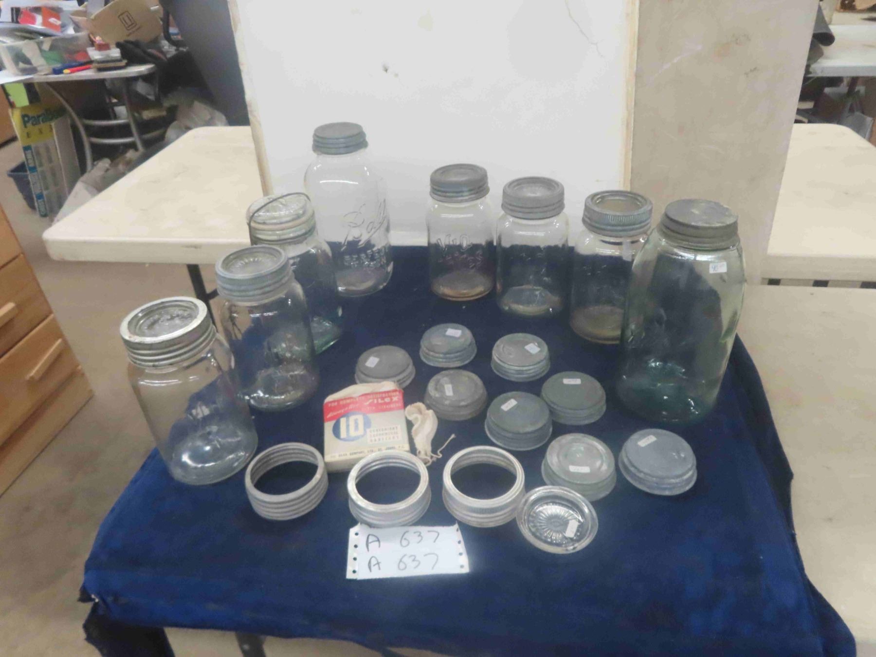 8 Good Old Sealer Jars ; Ball Midwest, Perfect Set & Extra Lids, Ball Porcelain