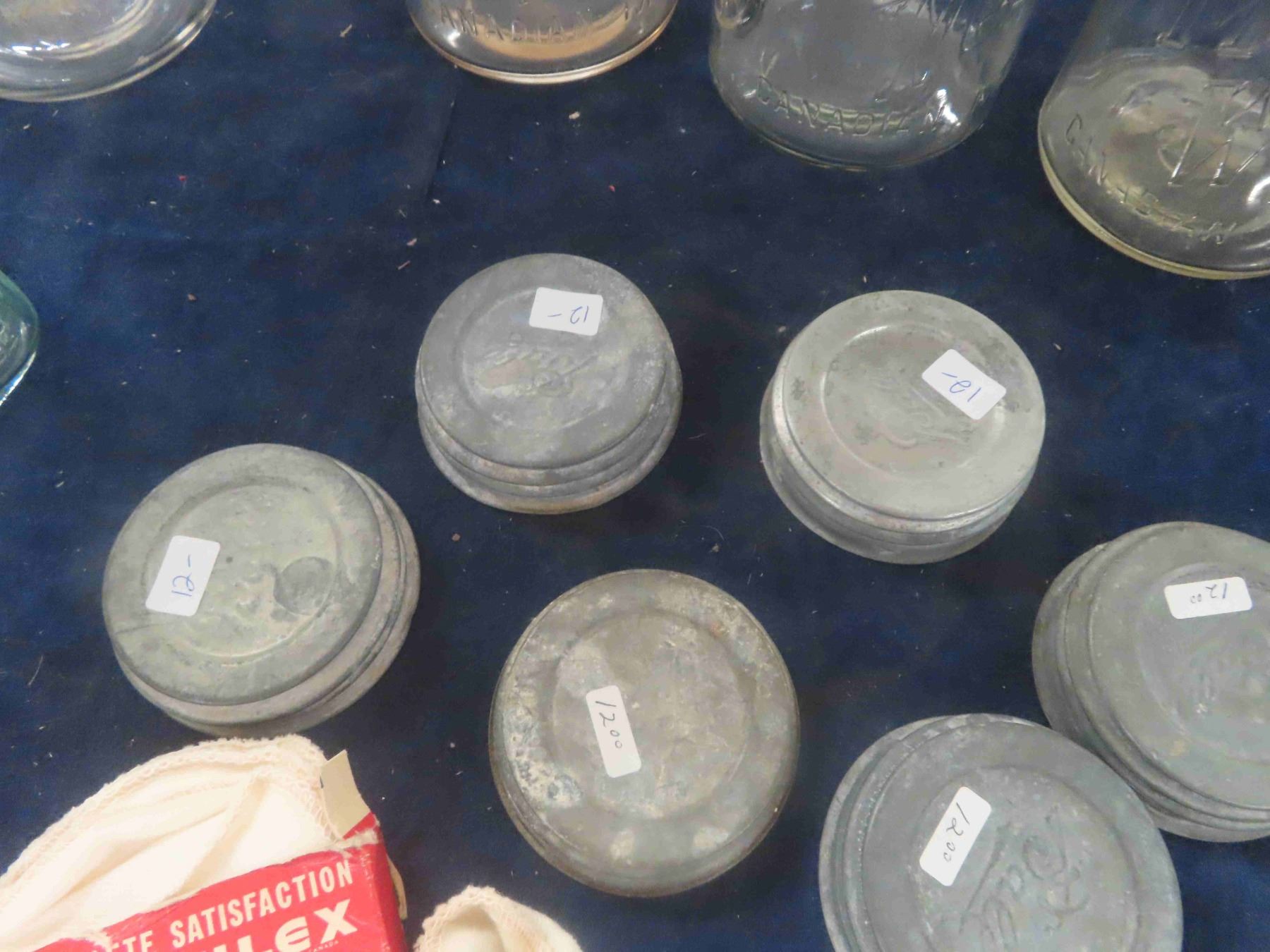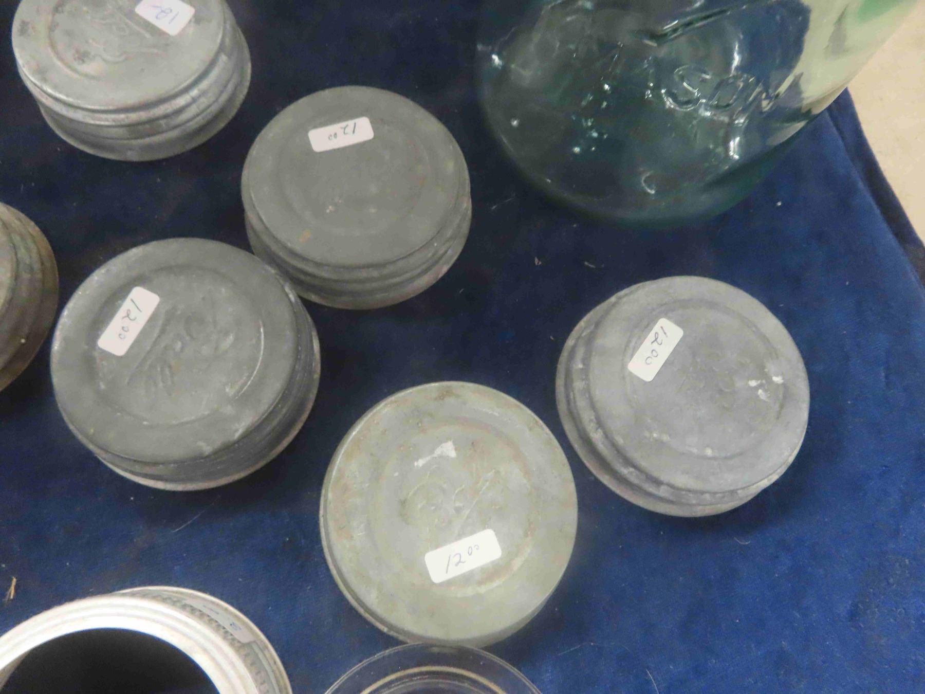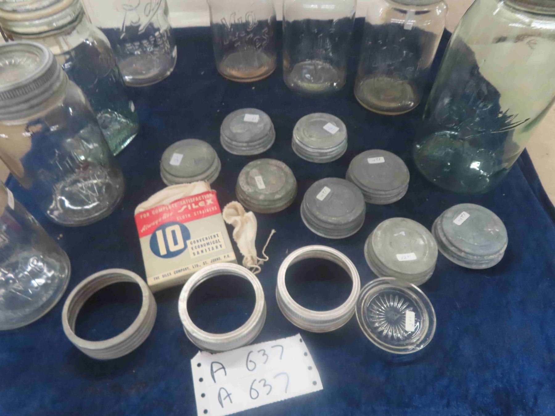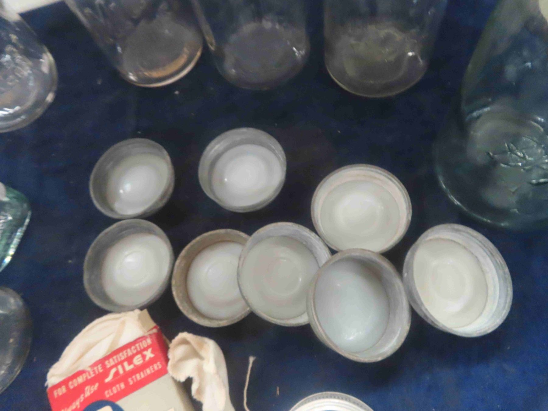 8 Good Old Sealer Jars ; Ball Midwest, Perfect Set & Extra Lids, Ball Porcelain