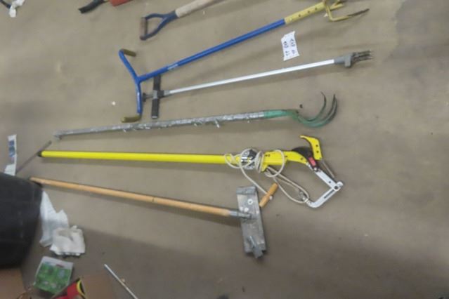 8 Hand Yard Tools: Branch Cutter, Garden Claw, Scuffler, Spade, Edger, Weed Puller, Pick Handle