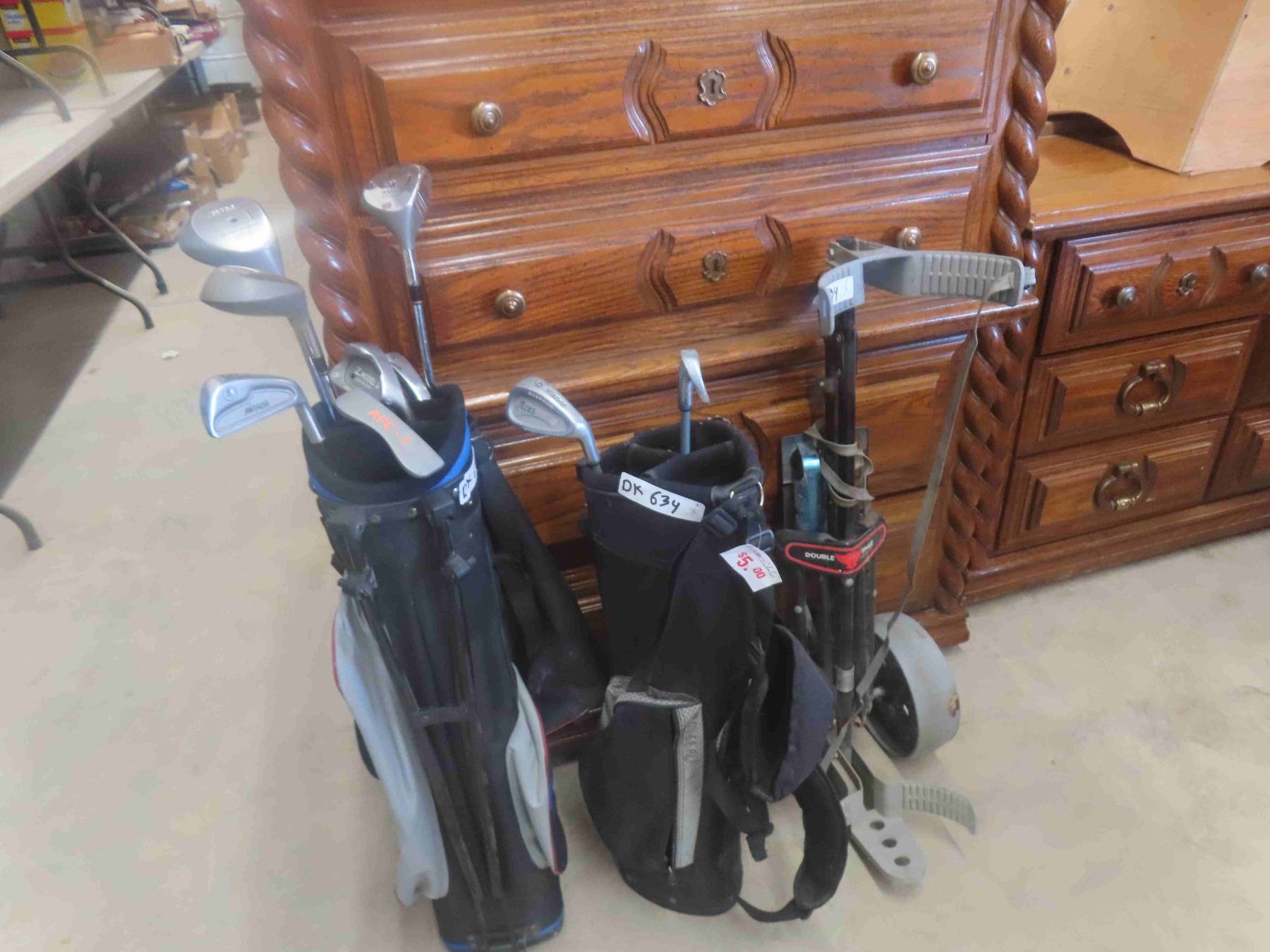 8 JR Golf Clubs, 2 Bags, 1 Cart
