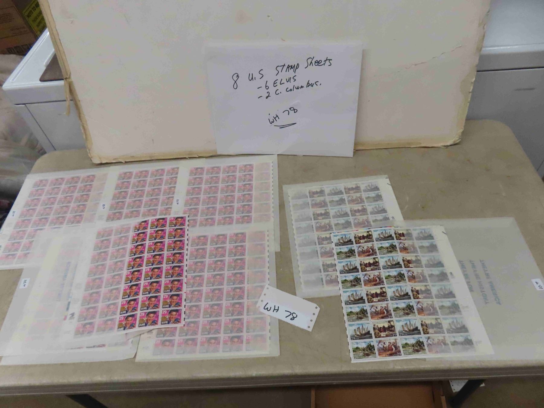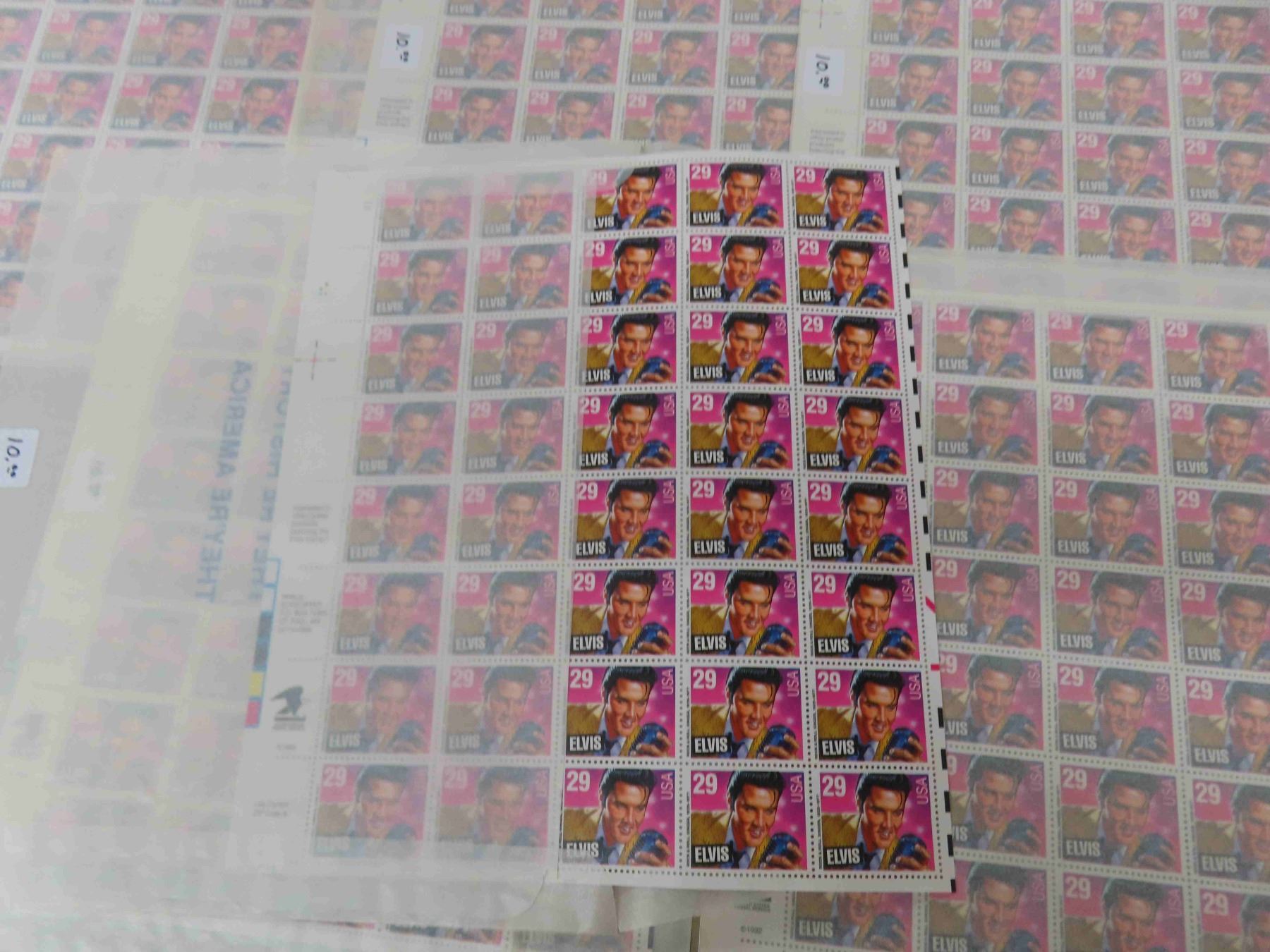 8 New Sheets of US Stamps - 6 Elvis + 2 Columbus - 40 Stamps per Sheet