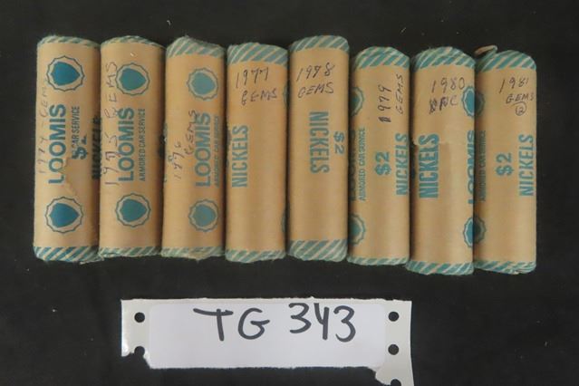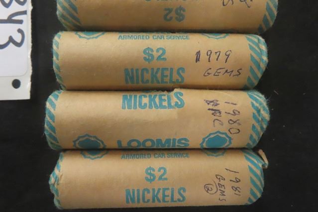 8 Rolls Canadian 5 Cent Coins - 1974, 1975, 1976, 1977, 1978, 1979, 1980, 1981- All Gems - 40 Per Roll
