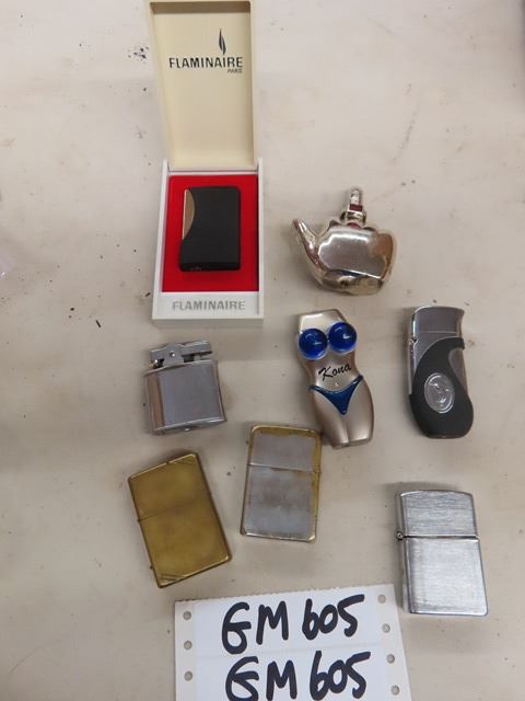 8 Various Lighters - 2 are Zippo, Flaminair with Box, Figural