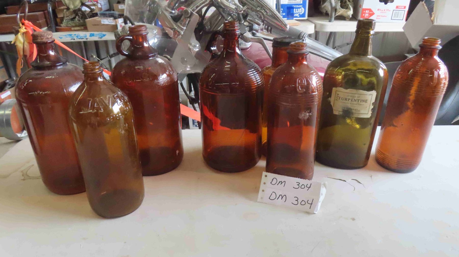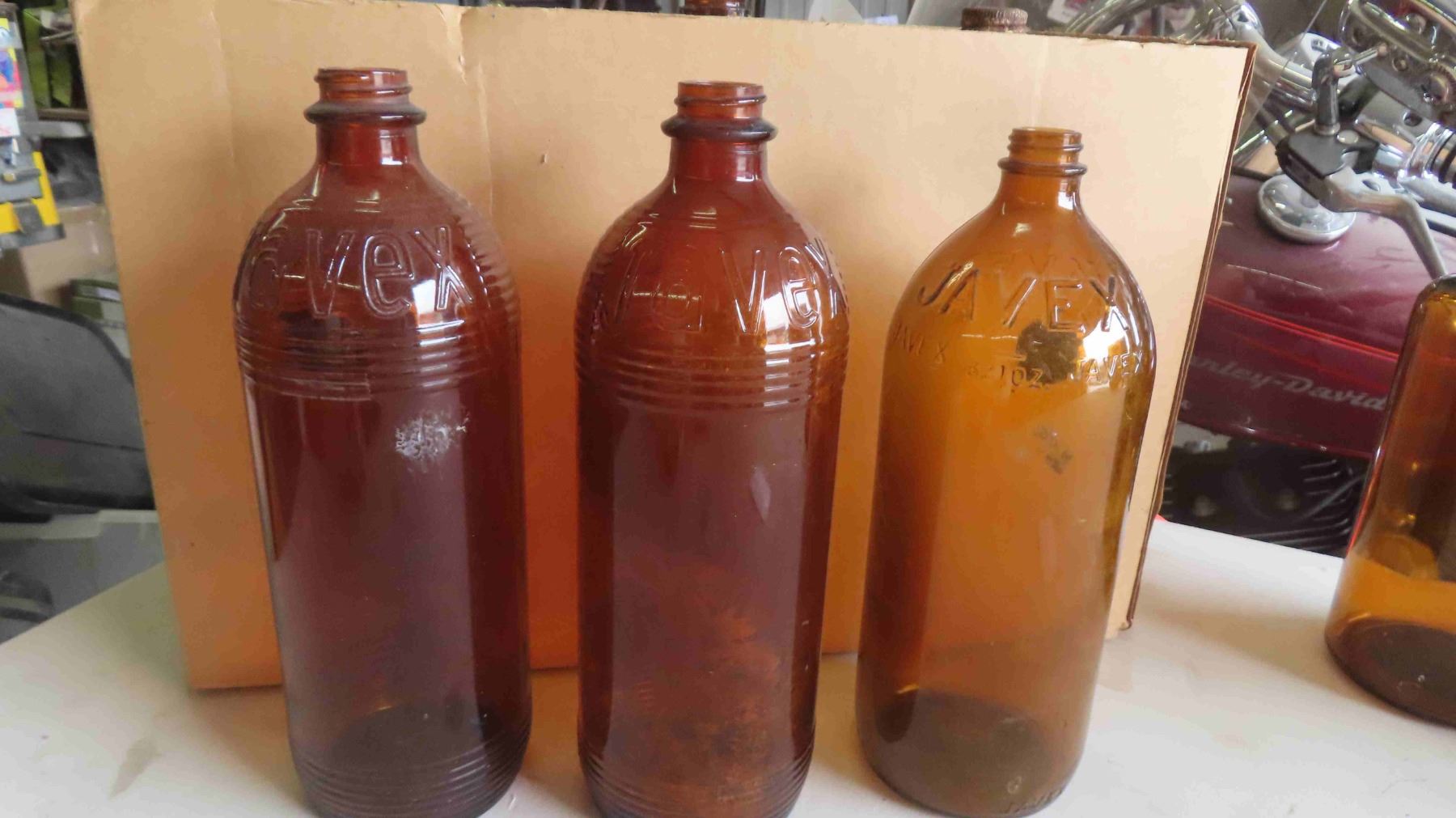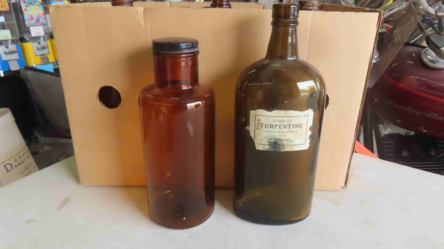 8 Vintage Bottles: Javex, Turpentine, Plus