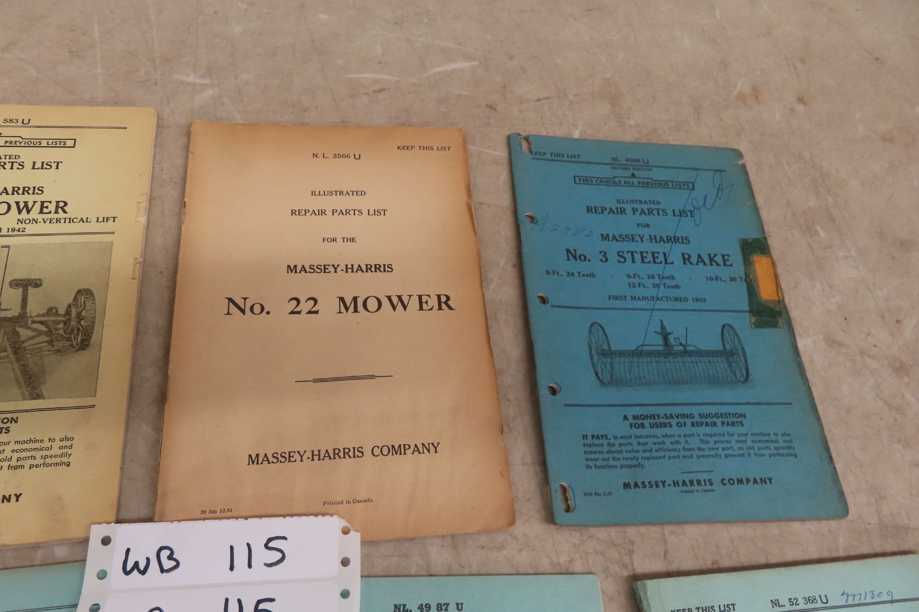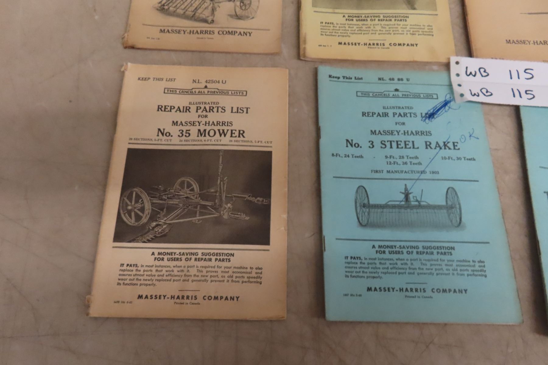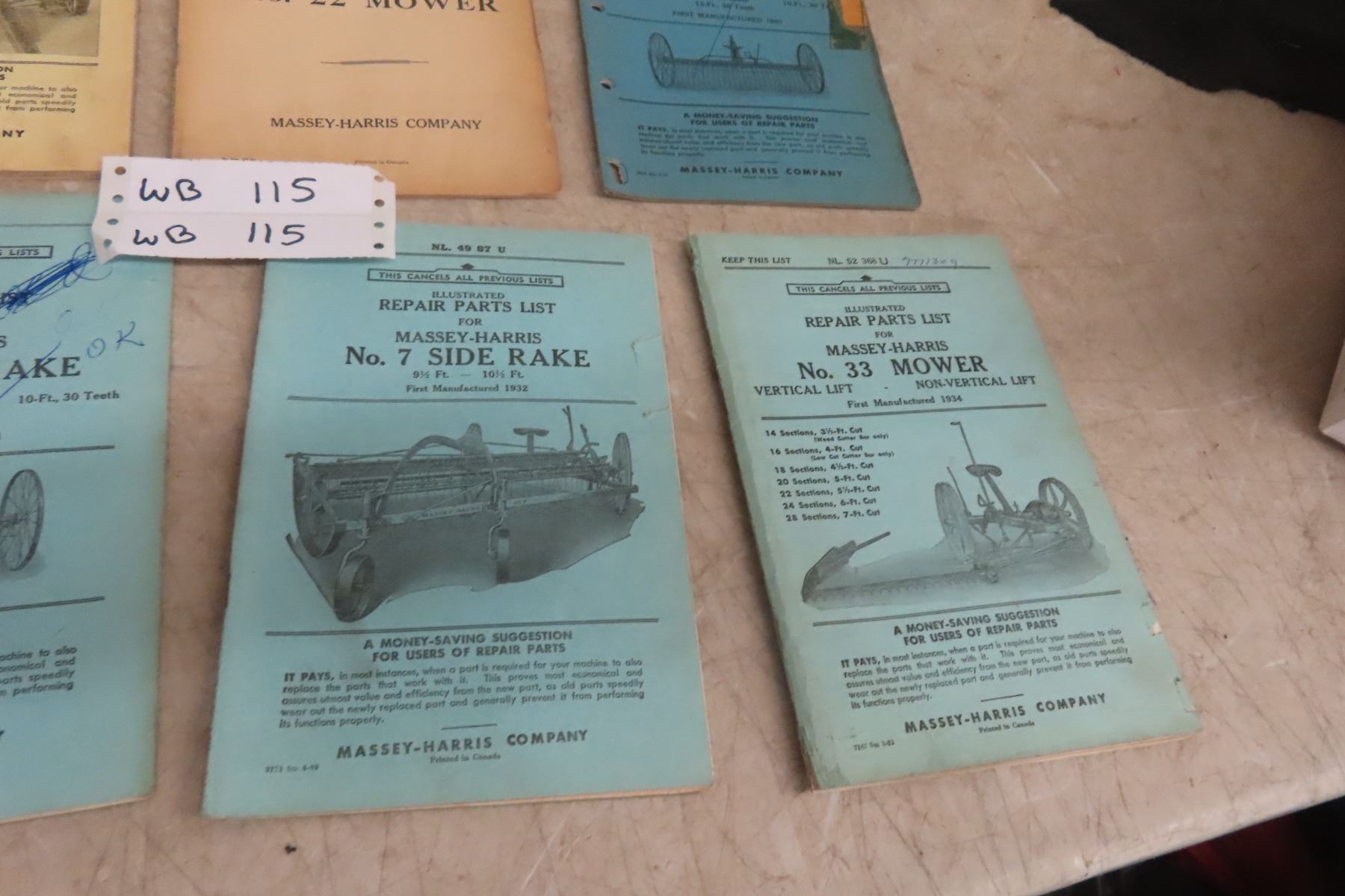8 Vintage Old Farm Machinery Manuals, Massey Harris Implements, Rakes, Mowers, Hay Loader