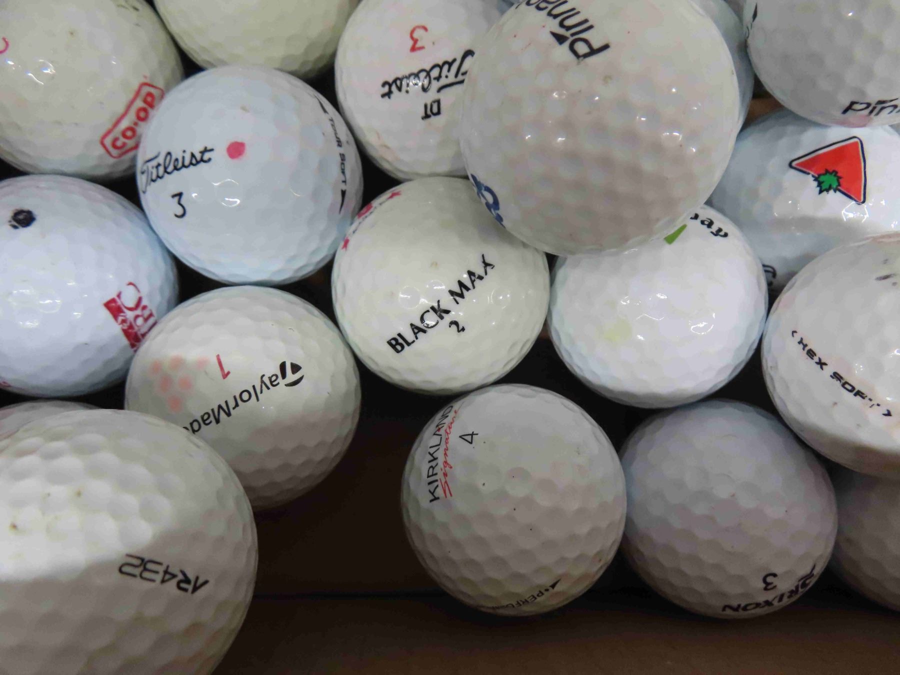 85 Assorted White Golf Balls - some With Advertising ; Calloway, Top Flite, Pinnacle,
