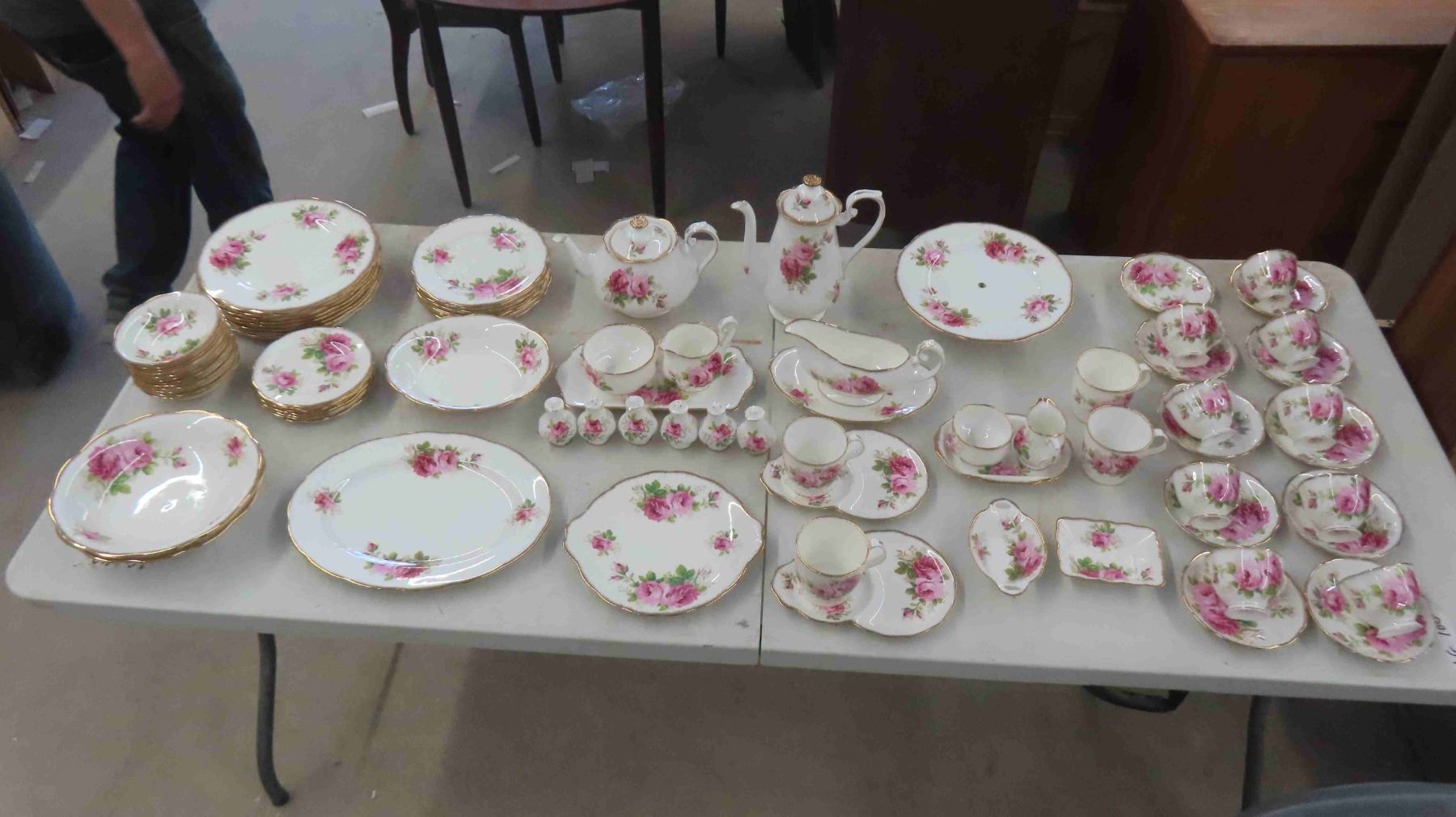 85 Pieces of Royal Albert American Beauty: Dinner Plates, Bread and Butter Plates,