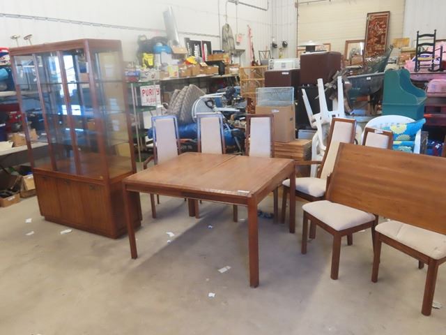 8pc Dining Room Suite; Open China Cabinet 75" x 48" x 16" , Table 29" x 48" x 42" plus 20" Leaf