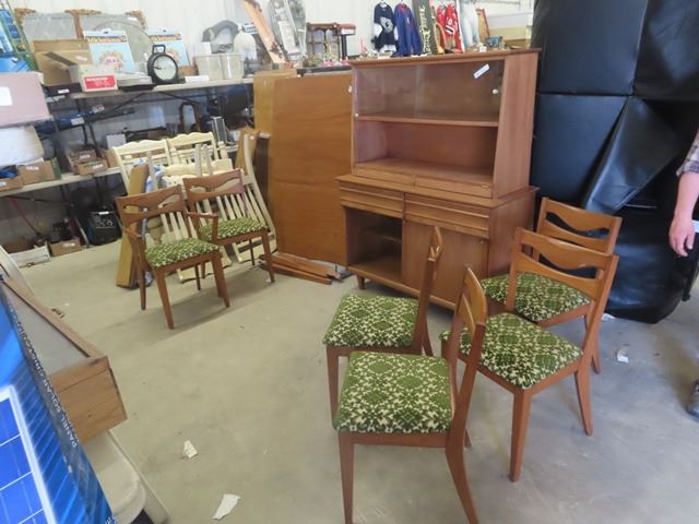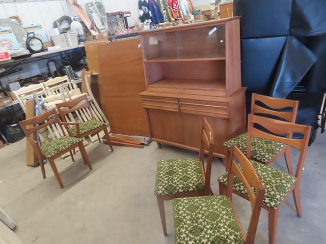 8pc Teak Dining Room Suite; Buffet/China Cabinet 60" x 48" x 18" , Table 36" x 56" plus (3) - 8" Leaves & 6 Chairs