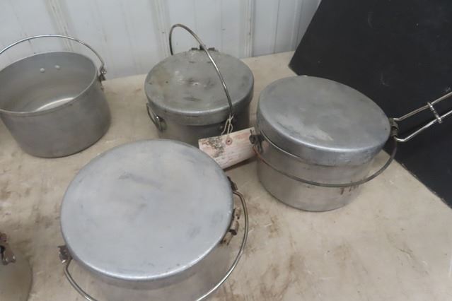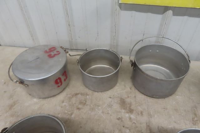 9 Aluminum Military Camp Cookware Items with Handles