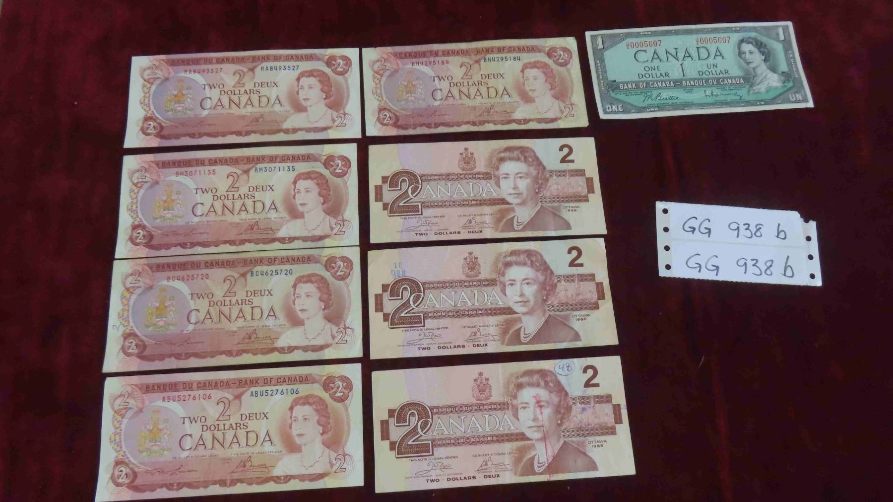 9 Canadian Bills: (8) $2 Bills (1) $1 Bill
