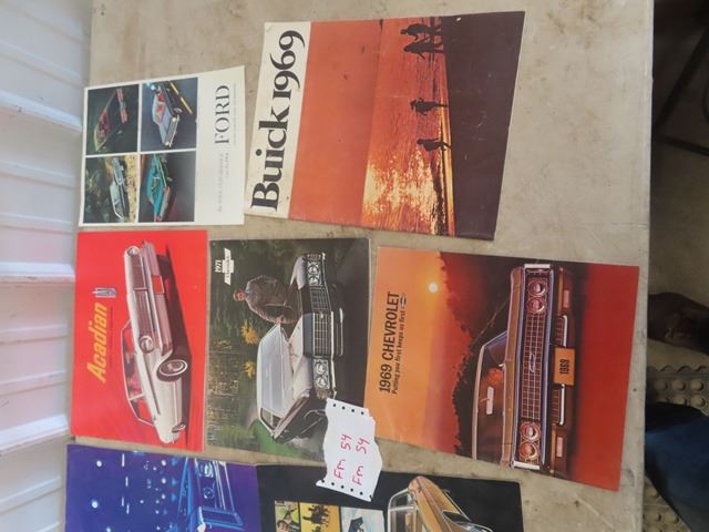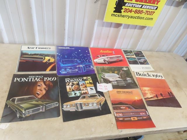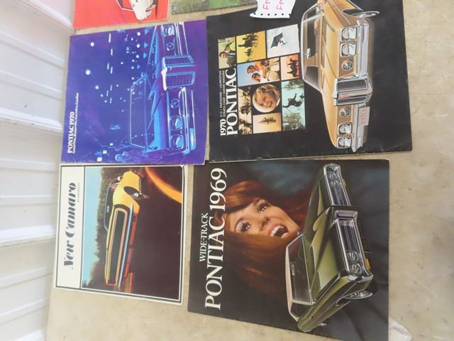 9 Car Brochures - 1960's + 70's ; Pontiac, Camero Chevy, Buick , Ford