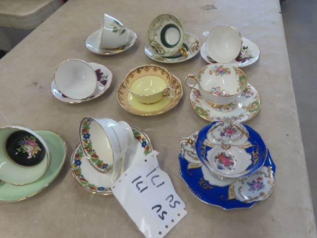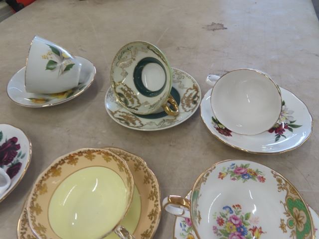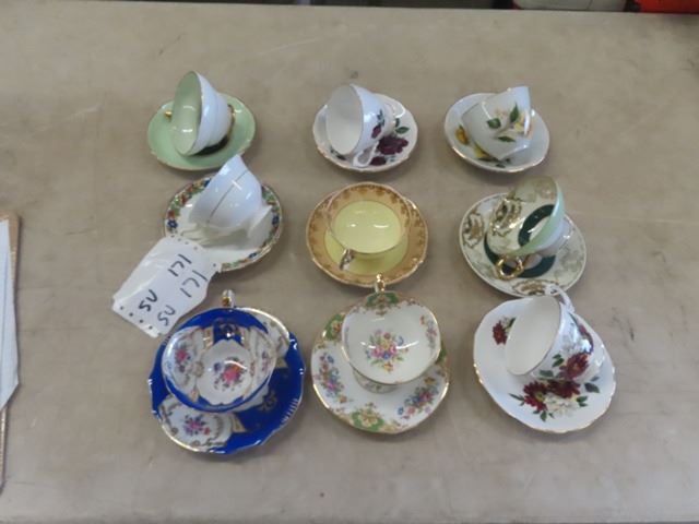 9 China Cup + Saucer Pairs ; Royal Vale, Shafford Royal Albert, Windsor, Occupied Japan, Ansley