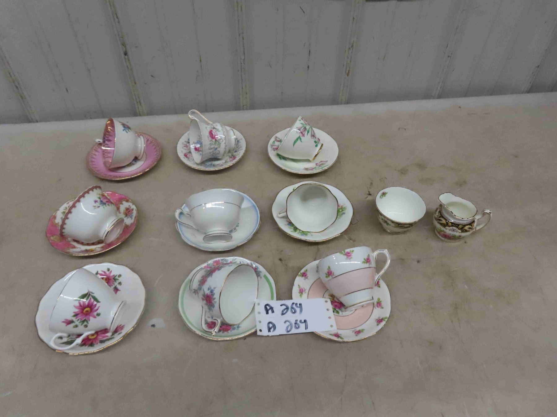 9 China Tea Cups + Saucer Pairs + Cream & Sugar ; Royal Vale, Rosylyn, Royal Albert, Queen Anne, Paragon, plus others