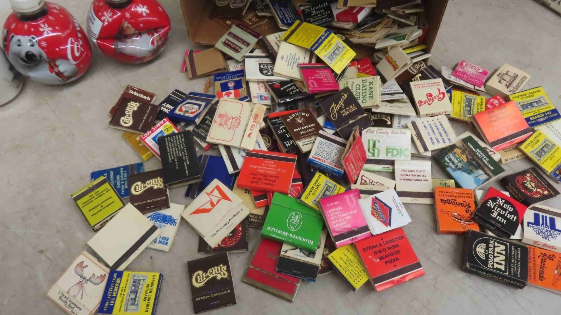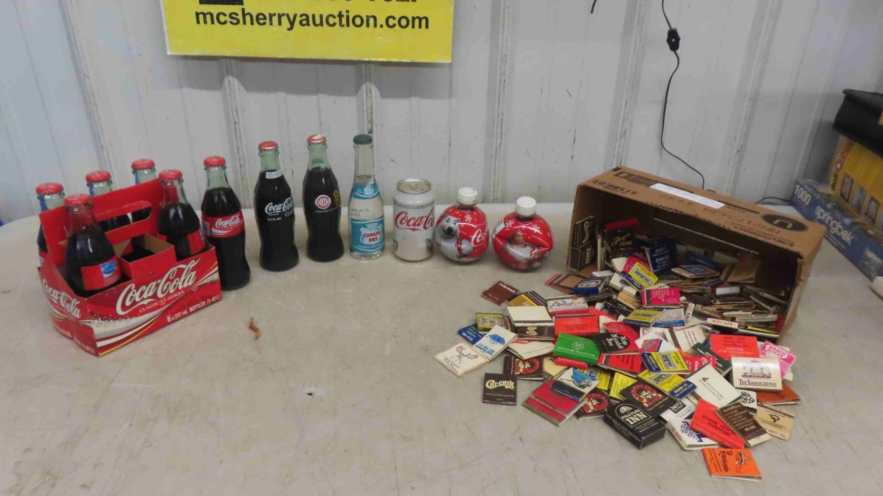 9 Coca Cola Bottles with Product and Case , Collection of Matchbook Covers