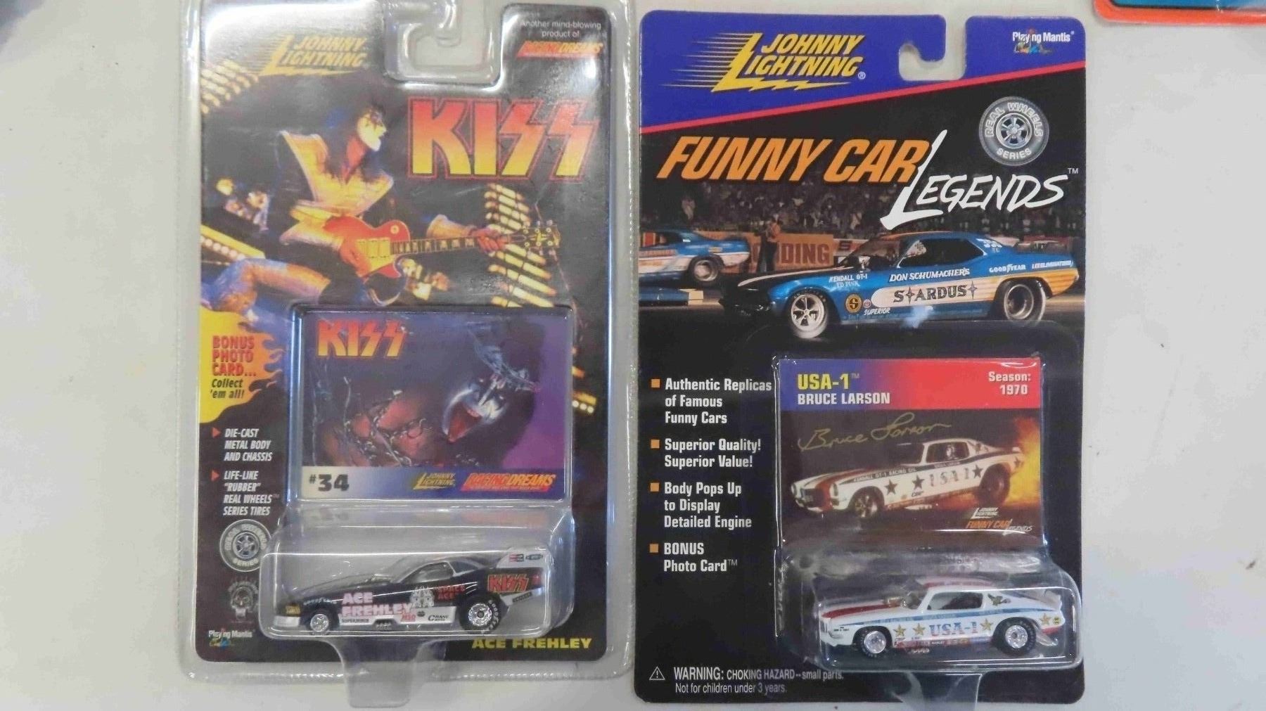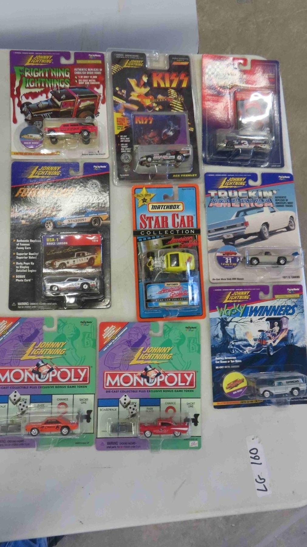 9 Diecast Cars : Kiss, Monopoly, Johnny Lightning, Matchbox Winners Circle, Plus