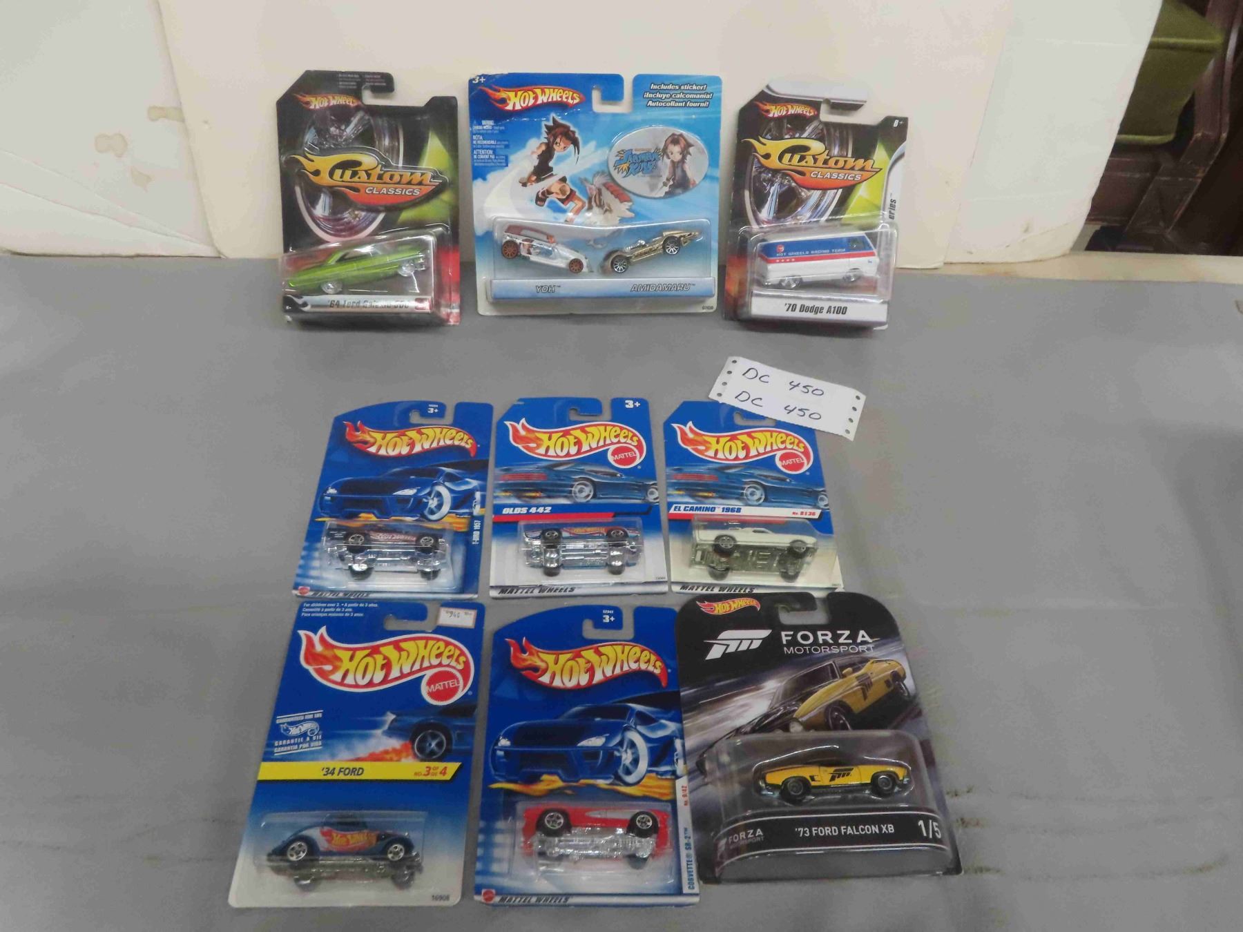 9 Hot Wheels in Package Including Custom Classic Motorsport, plus more