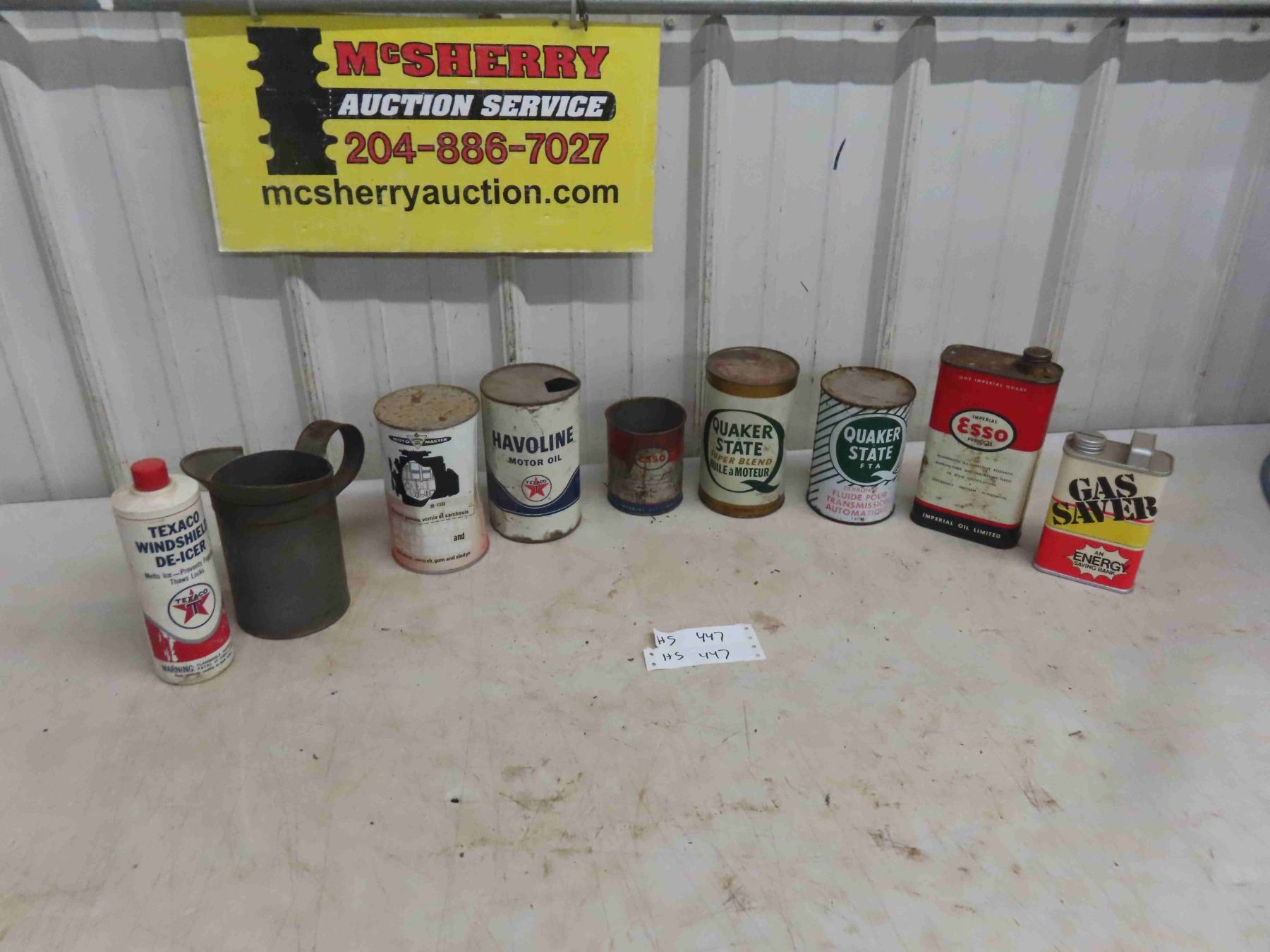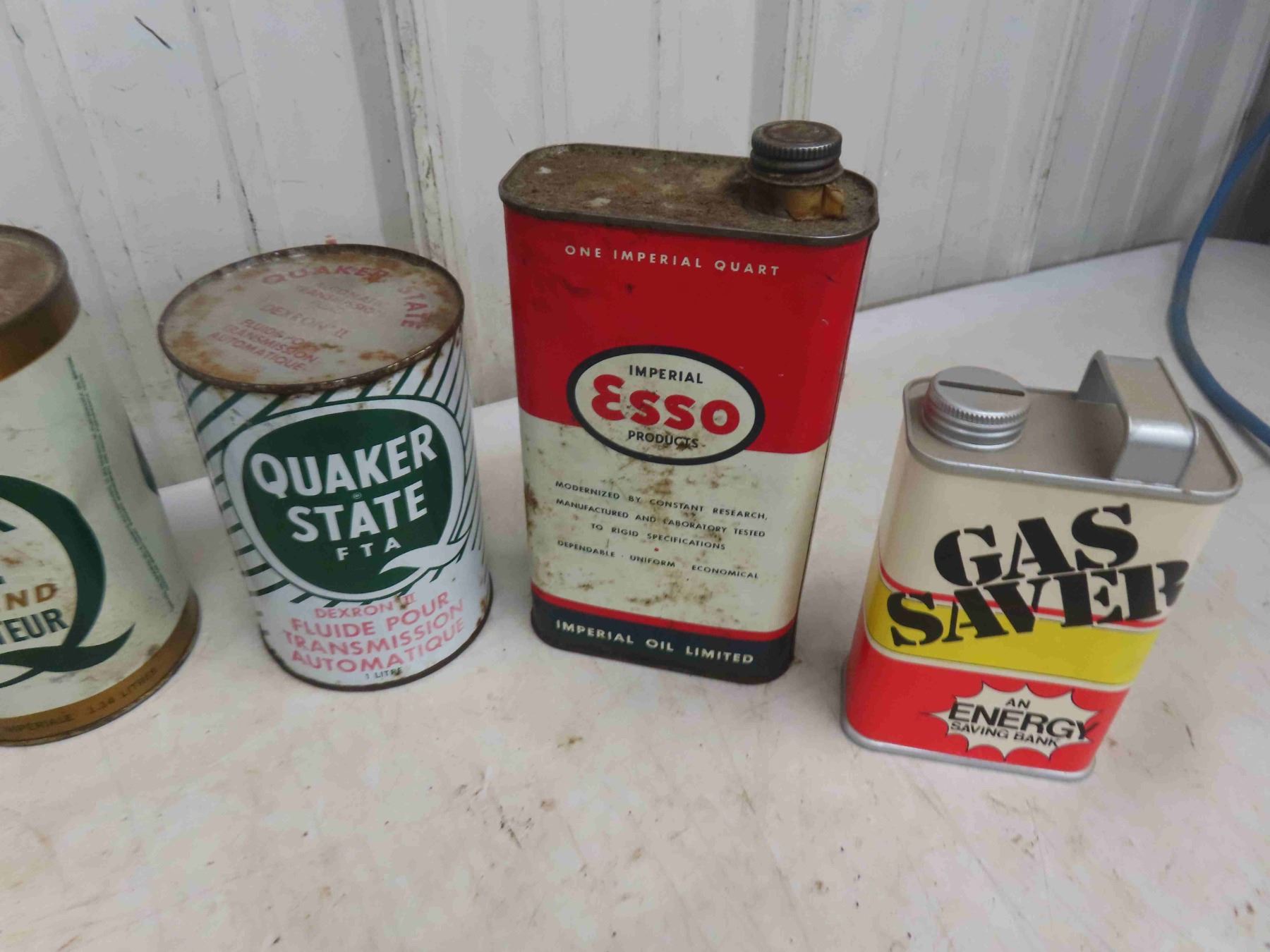 9 Oil Cans , Related Auto Products : Esso, Quaker State, Texaco