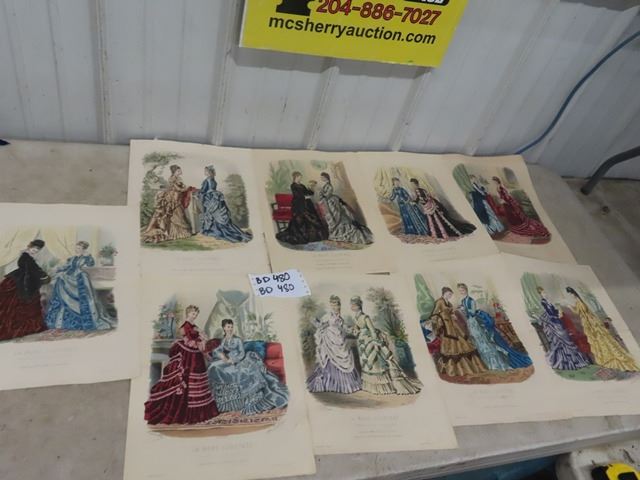 9 Original 1870's Hand Colored Paris Fashion Prints 15" x 11" (Orig) Not Copies