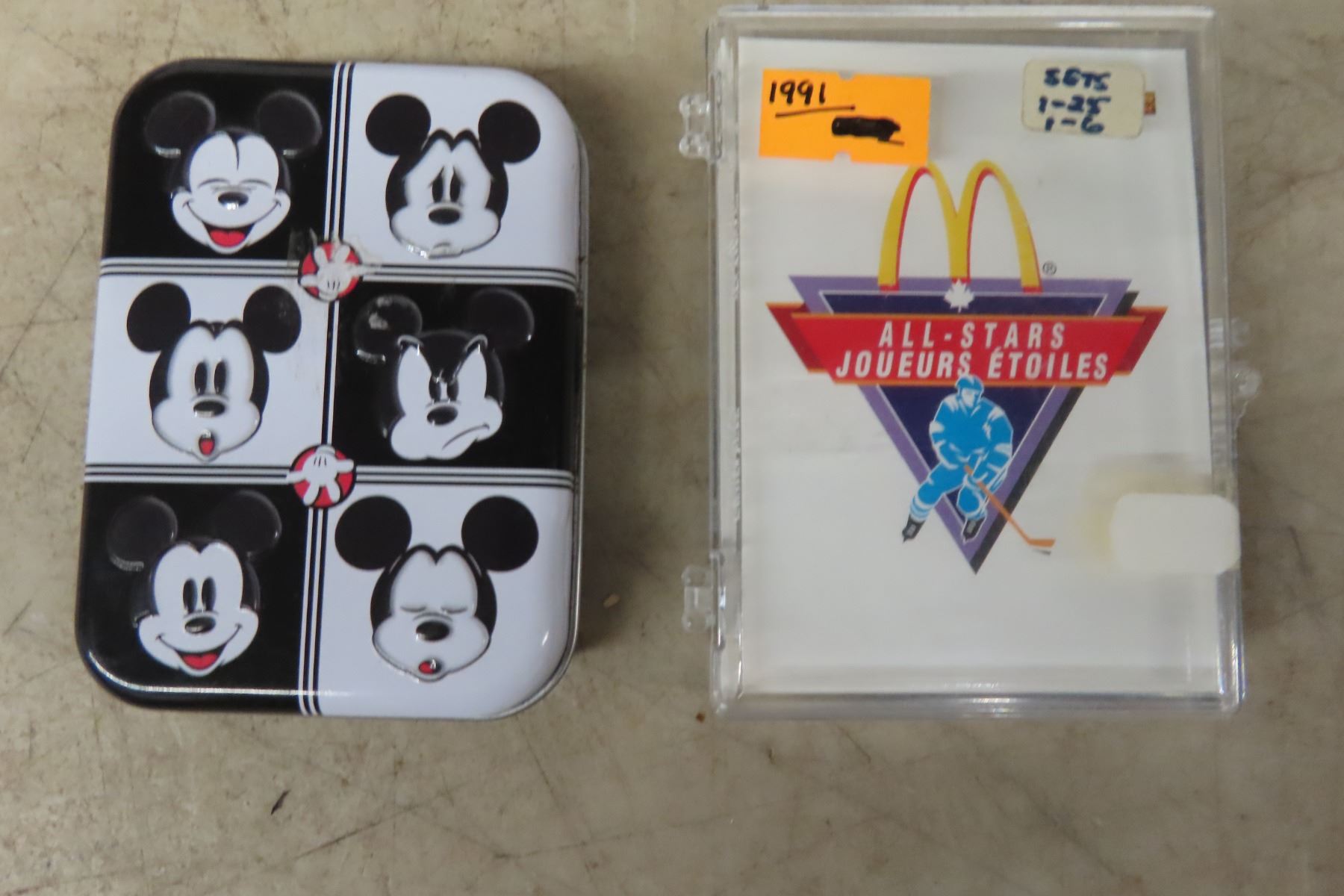 9 Pencil Sharpeners, 5- Disney Characters and 2 Sets 1991 Hockey Cards #1-25 and # 1-6