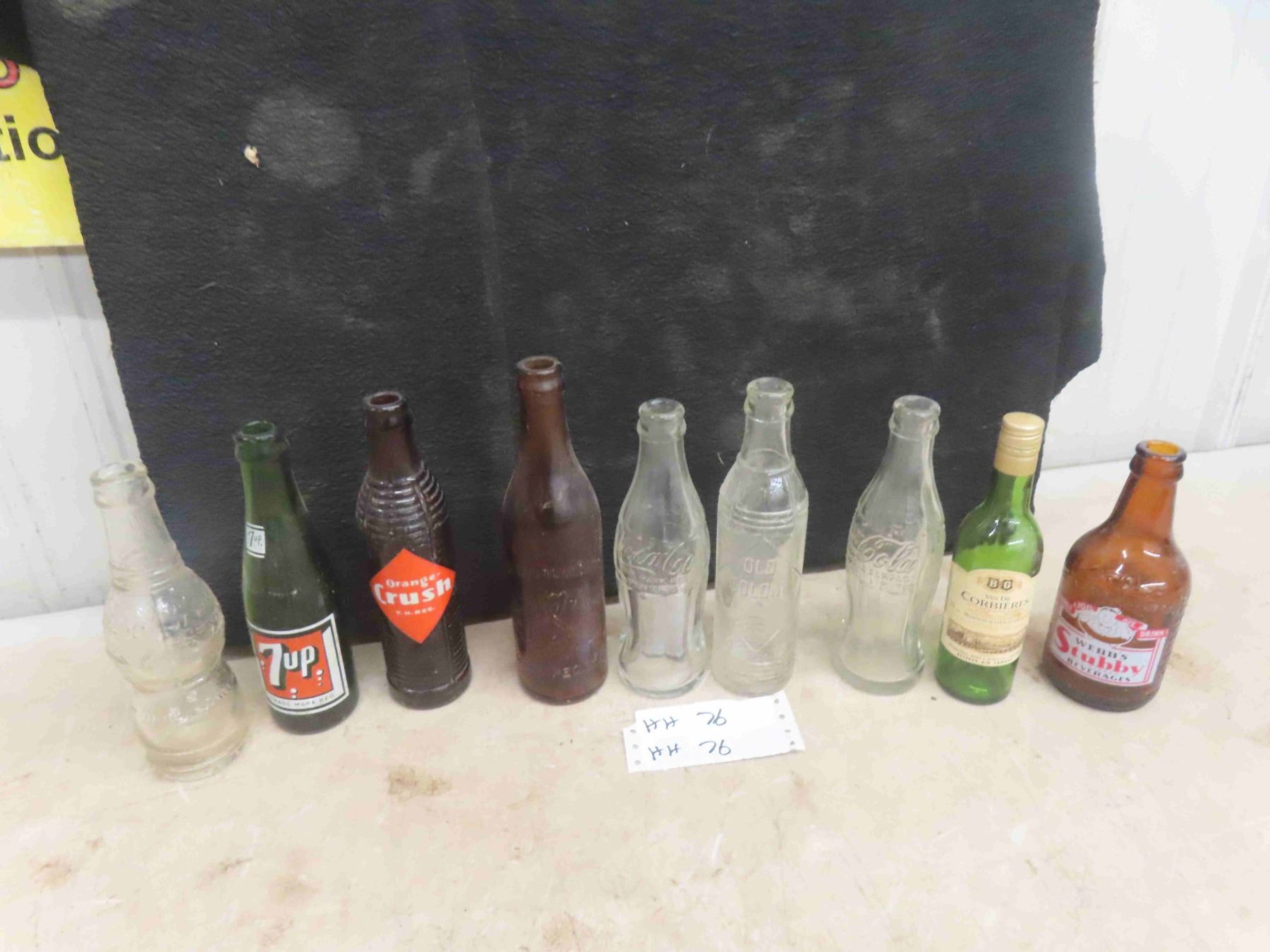9 Pop Bottles: Stubby, Coke, Orange Crush, 7UP & More.