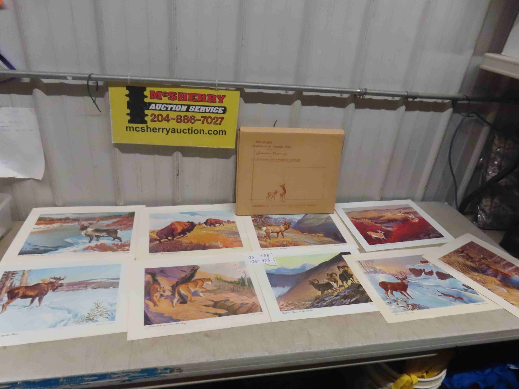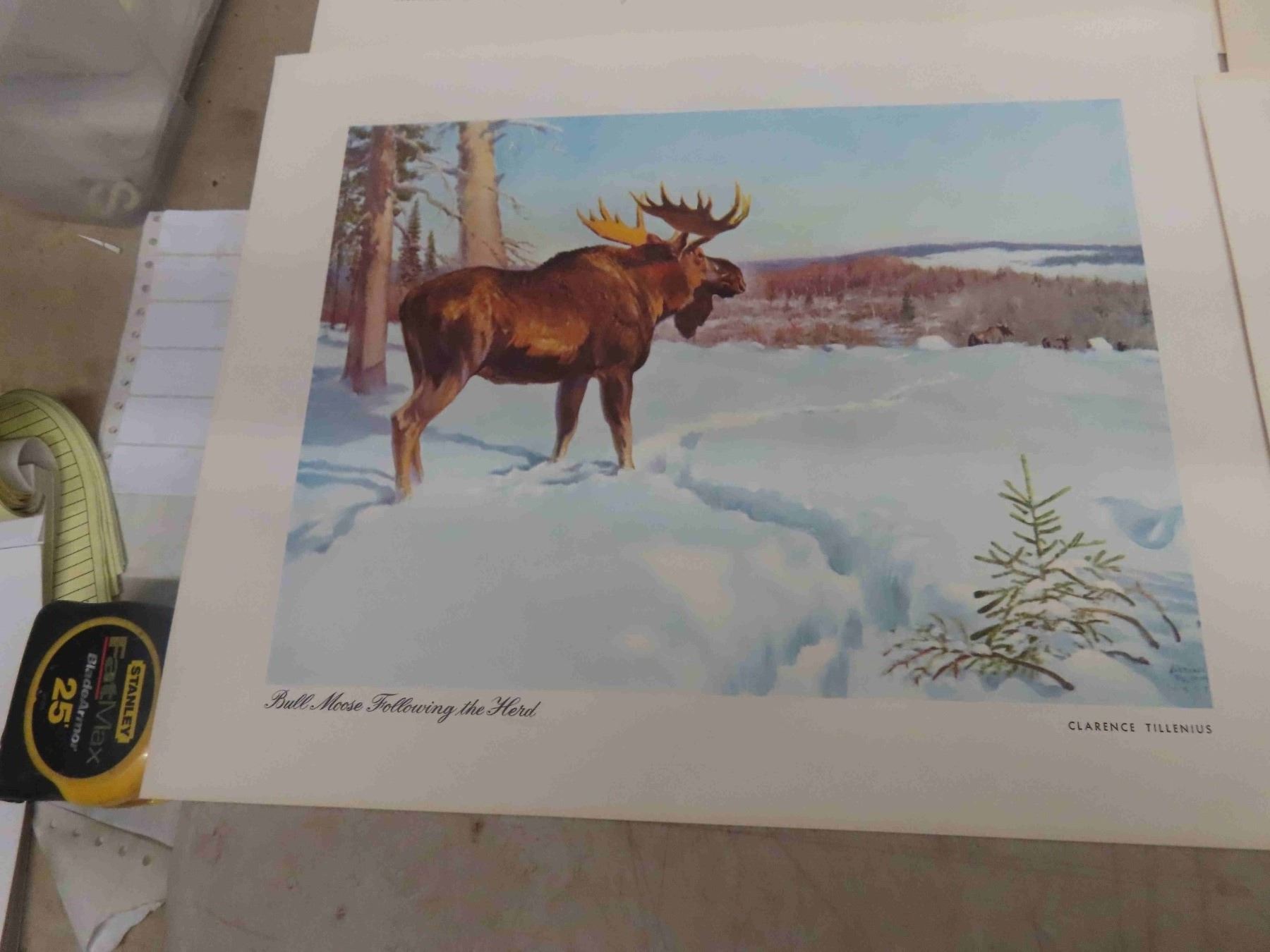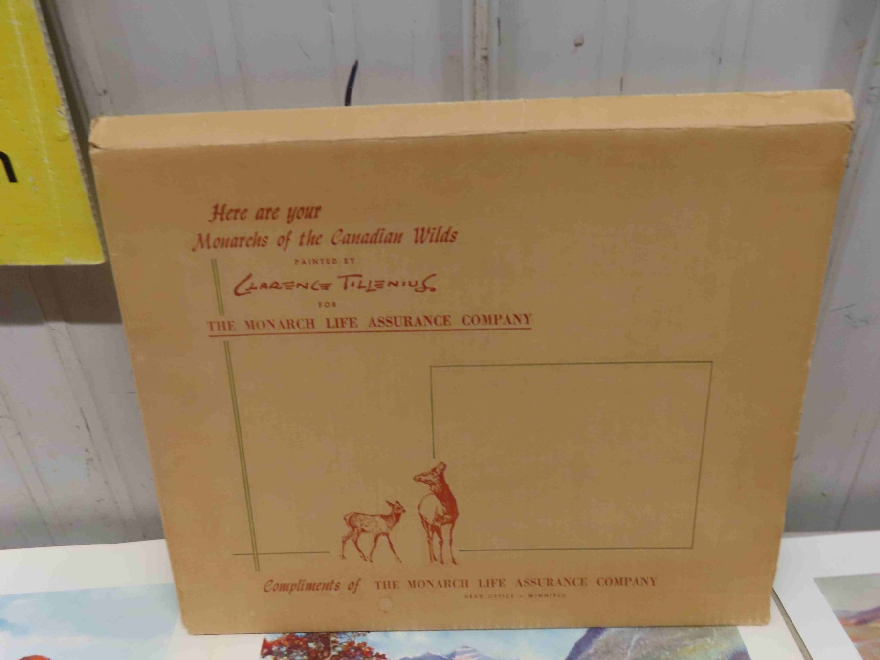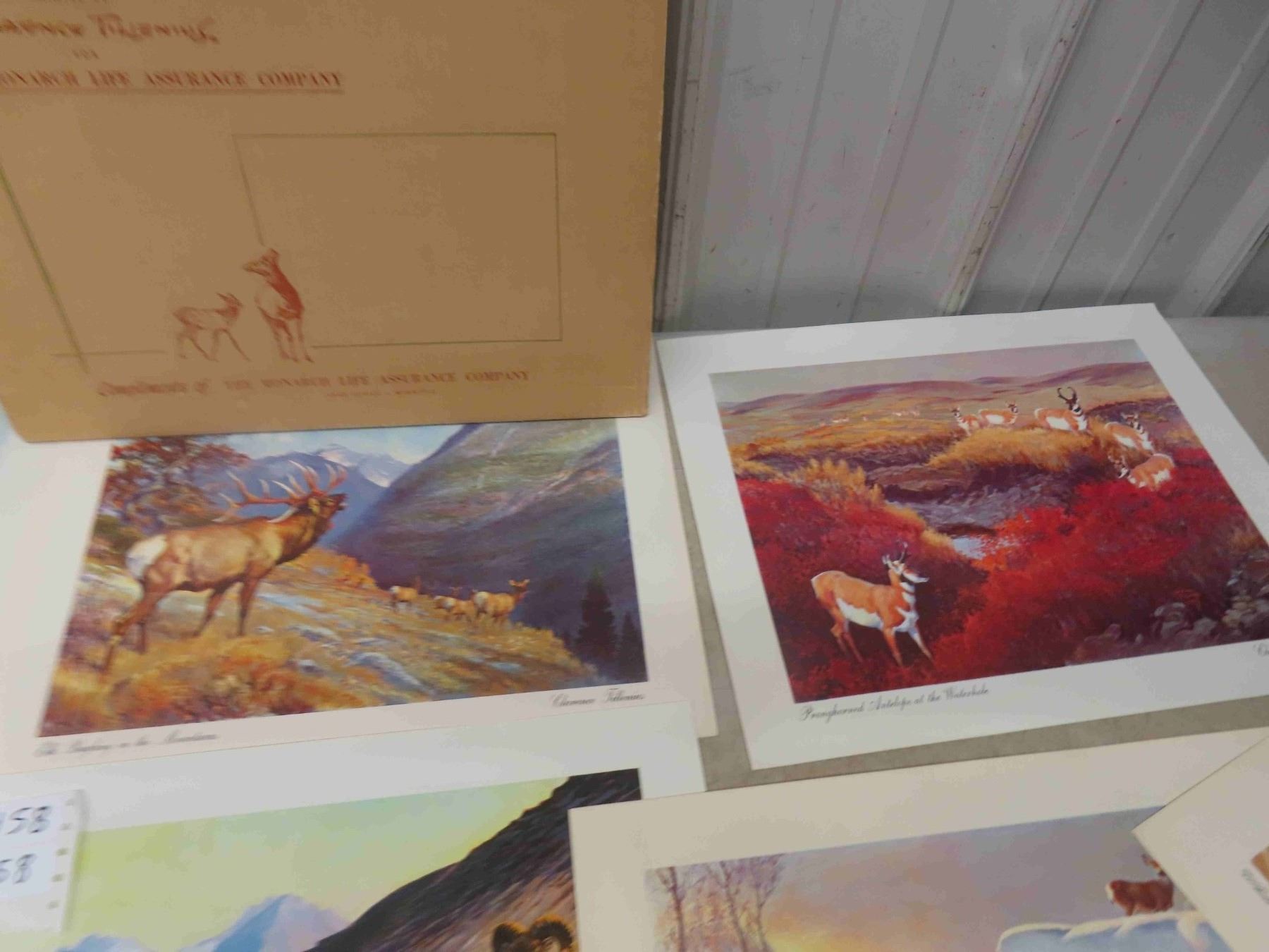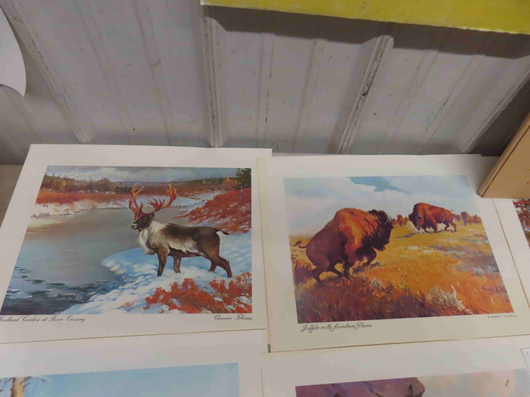 9 Prints from Series Wildlife of Canadian Wilds in Original Box Prominent Canadian Artist Clarence Tillenius, Compliments of Monarch Life Assurance Company, WPG