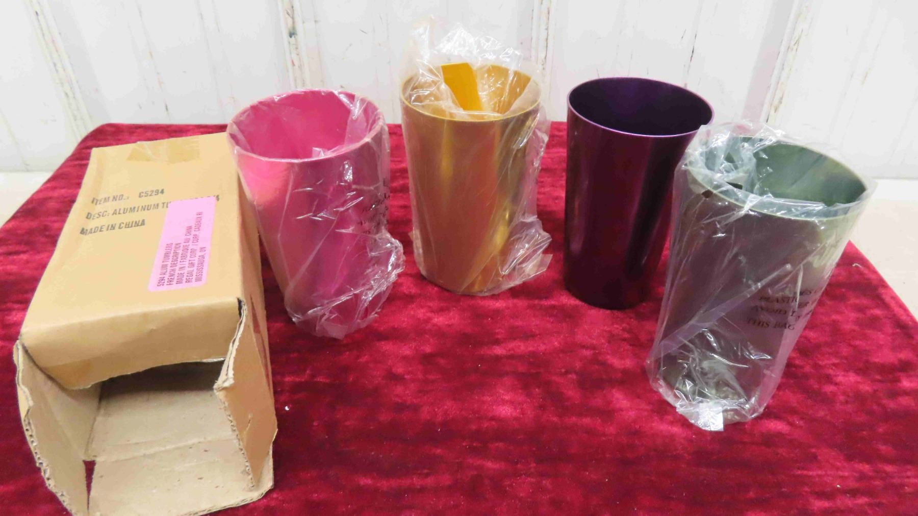 9 Rose Bowls, 4 New Old Stock Anodized Color Aluminum Tumblers, Set of 55 Ivory White