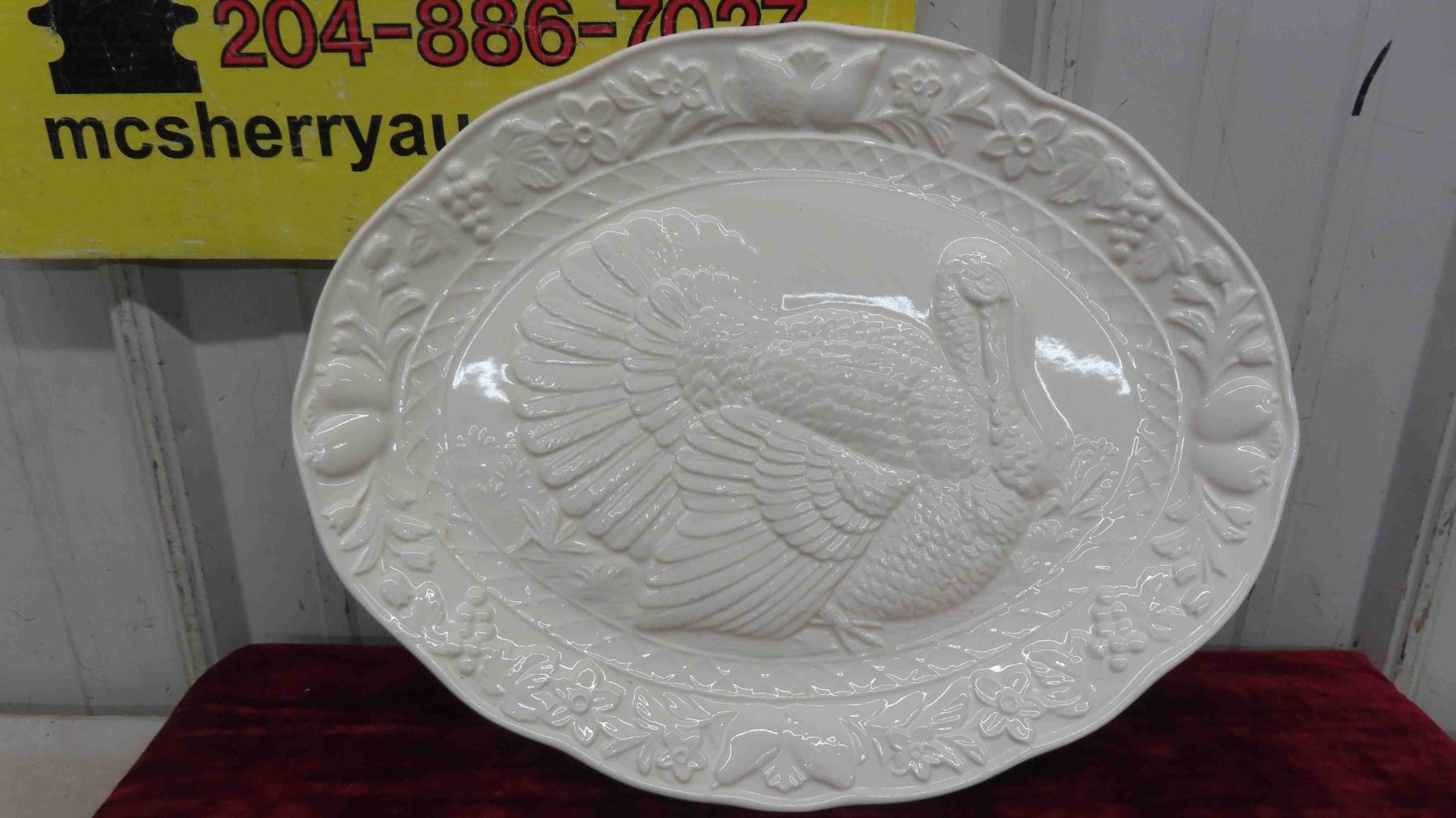9 Rose Bowls, 4 New Old Stock Anodized Color Aluminum Tumblers, Set of 55 Ivory White Double Nine Standard Dominoes - Looks Complete + Unused & Embossed Turkey Platter 14" x 18"