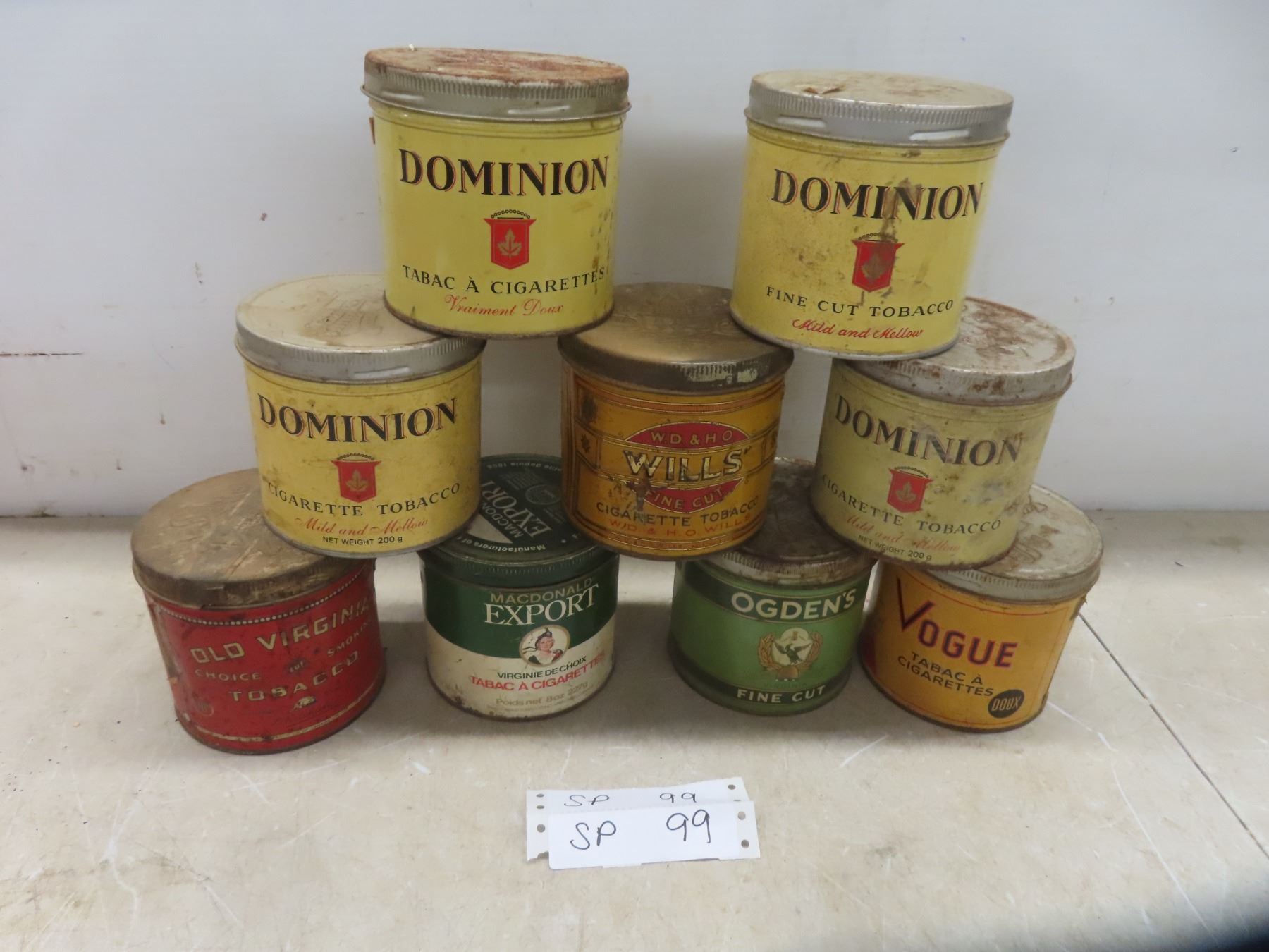 9 Tobacco Tins : Dominion, Ogdens Old Virginia , Vogue